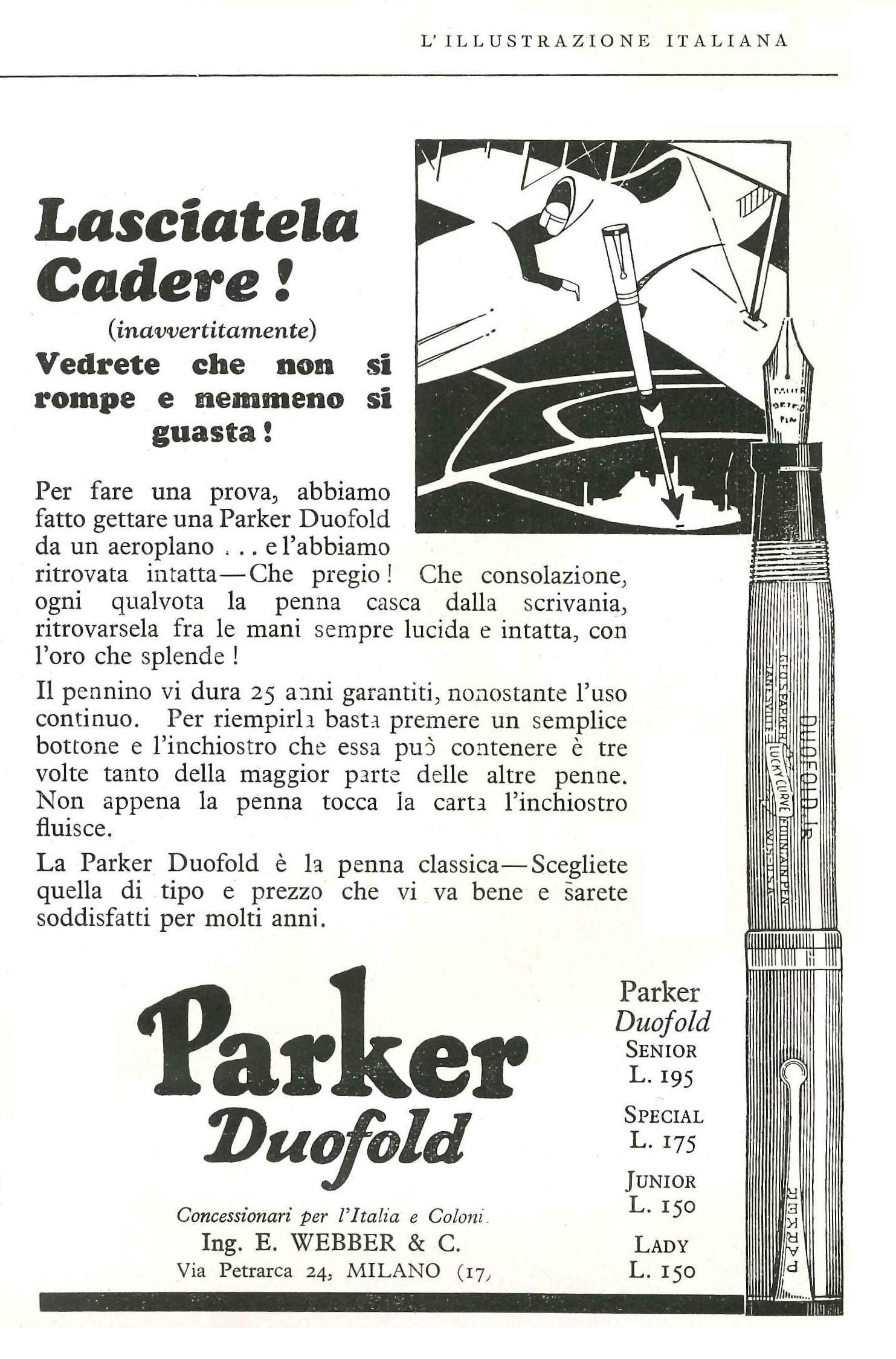 PARKER - Duofold in celluloide - 1928-08-26. L'Illustrazione Italiana - Anno LV - N.35 - pag.IV