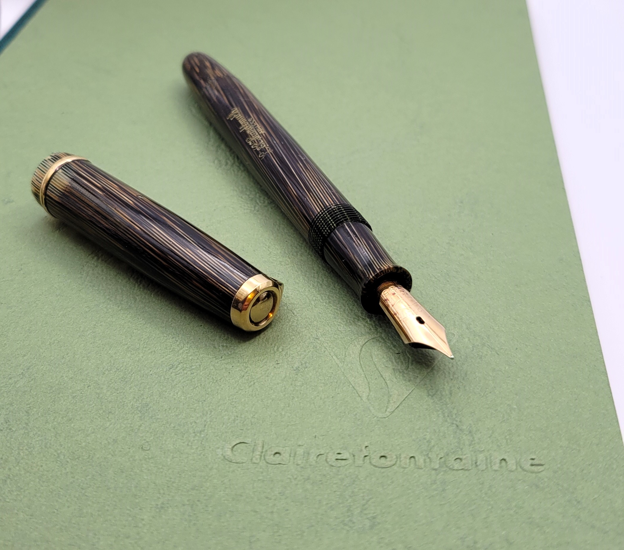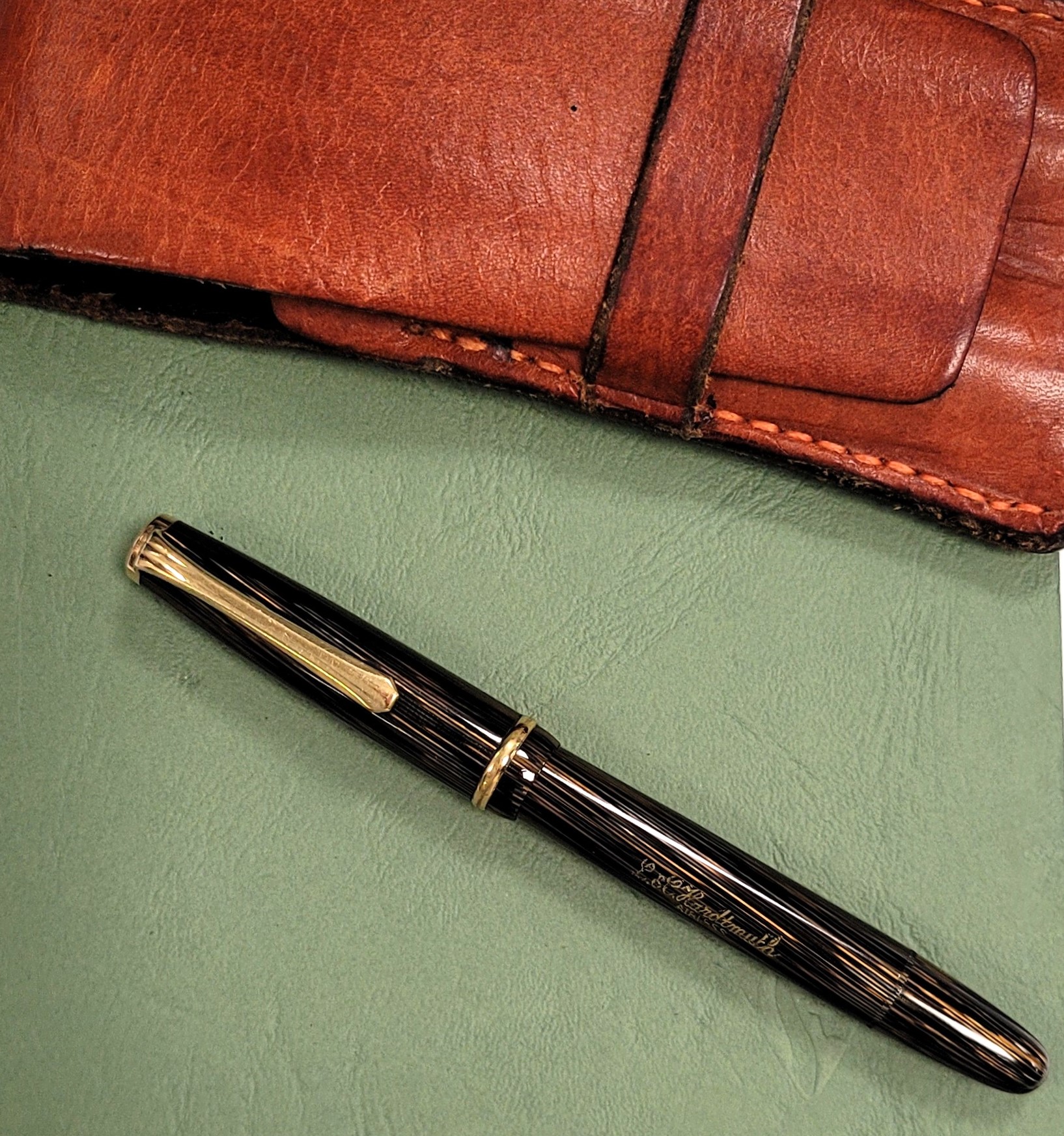 stilografica poco conosciuta ma molto carina: L&C Hardtmuth - Airless Celluloide traslucida a strisce marrone - oro.