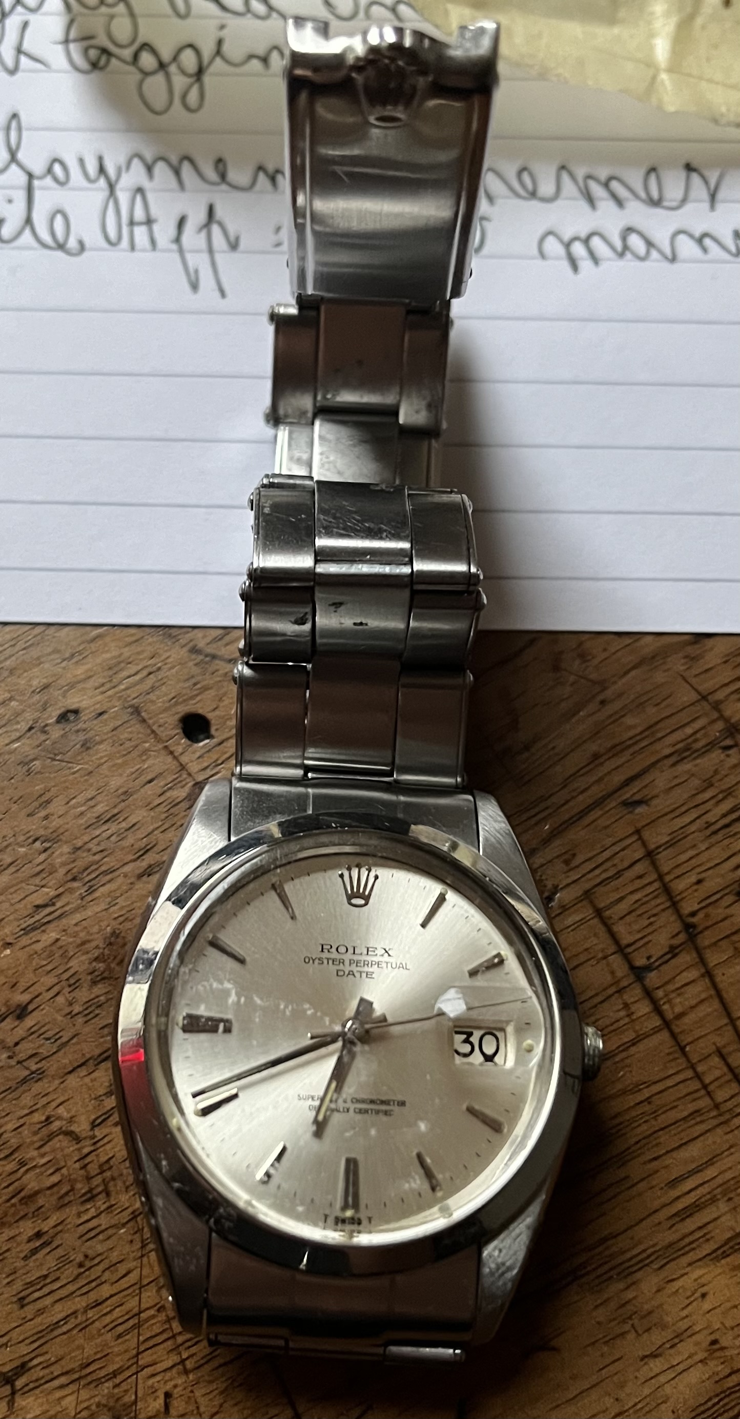 di passaggio a Milano sono andato a trovare mio zio. Parlando del più e del meno mi ha fatto i complimenti per l'orologio che avevo al polso e gli ho spiegato che ne ho più d'uno e che li alterno. Mi guarda e mi fa 'aspetta un po' che da qualche parte ho degli orologi che ti posso dare ma non puoi dire di no'. Si alza e va a ravanare in un cassetto e ritorna con die oggetti in mano. Un'orologio con bracciale d'acciaio ed una 'bolgetta'. L'orologio era avvolto con del nastro da carrozziere, lo apro e scopro che è un