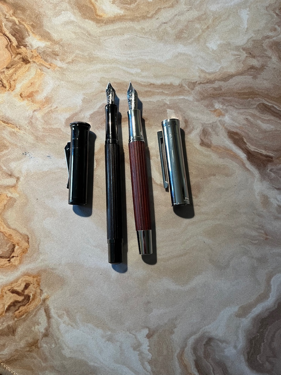Automedonte ha scritto: giovedì 8 maggio 2025, 9:37 Quando ho comprato la Graf von Faber Castel Classic ero indeciso tra la Macassar di legno scuro e con parti metalliche brunite e quella con pernambuco che ha legno più chiaro e parti metalliche placcate platino, ho optato per la prima perché la trovo più elegante però mi era rimasta la voglia di quella più chiara ma non quella di spendere altri 600 euro per una penna sostanzialmente uguale e nella quale cambia solo il colore.