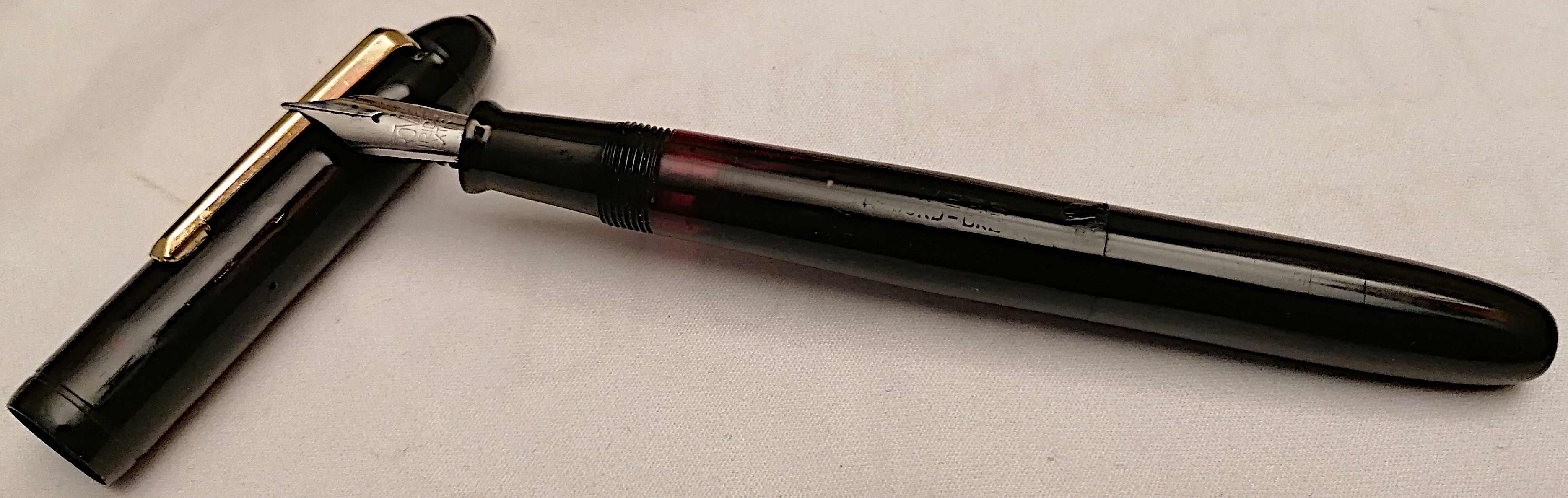 Il caricamento è una sorta di antesignano del Vacumatic, pulsantone di fondo su piccolo sacchetto (2,5 cm) e sfiatatoio al feeder.