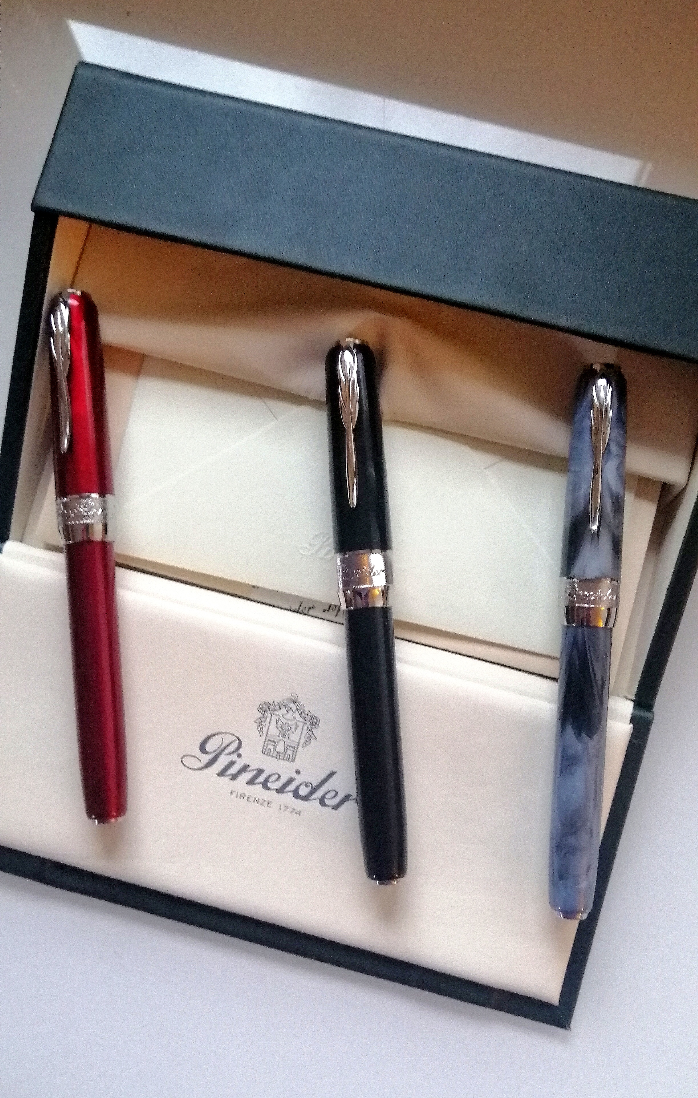 All'inizio avevo puntato la Heritage SE per i colori, però costicchiava...allora sono passata alla 823, ma era anche lei un po' fuori budget. Poi 743, Heritage 92 etc....infine, pur essendo un po' titubante perché era disponibile solo con pennino FA e pur essendo nera (poi ho pensato...ma io non ne ho neppure una nera!!