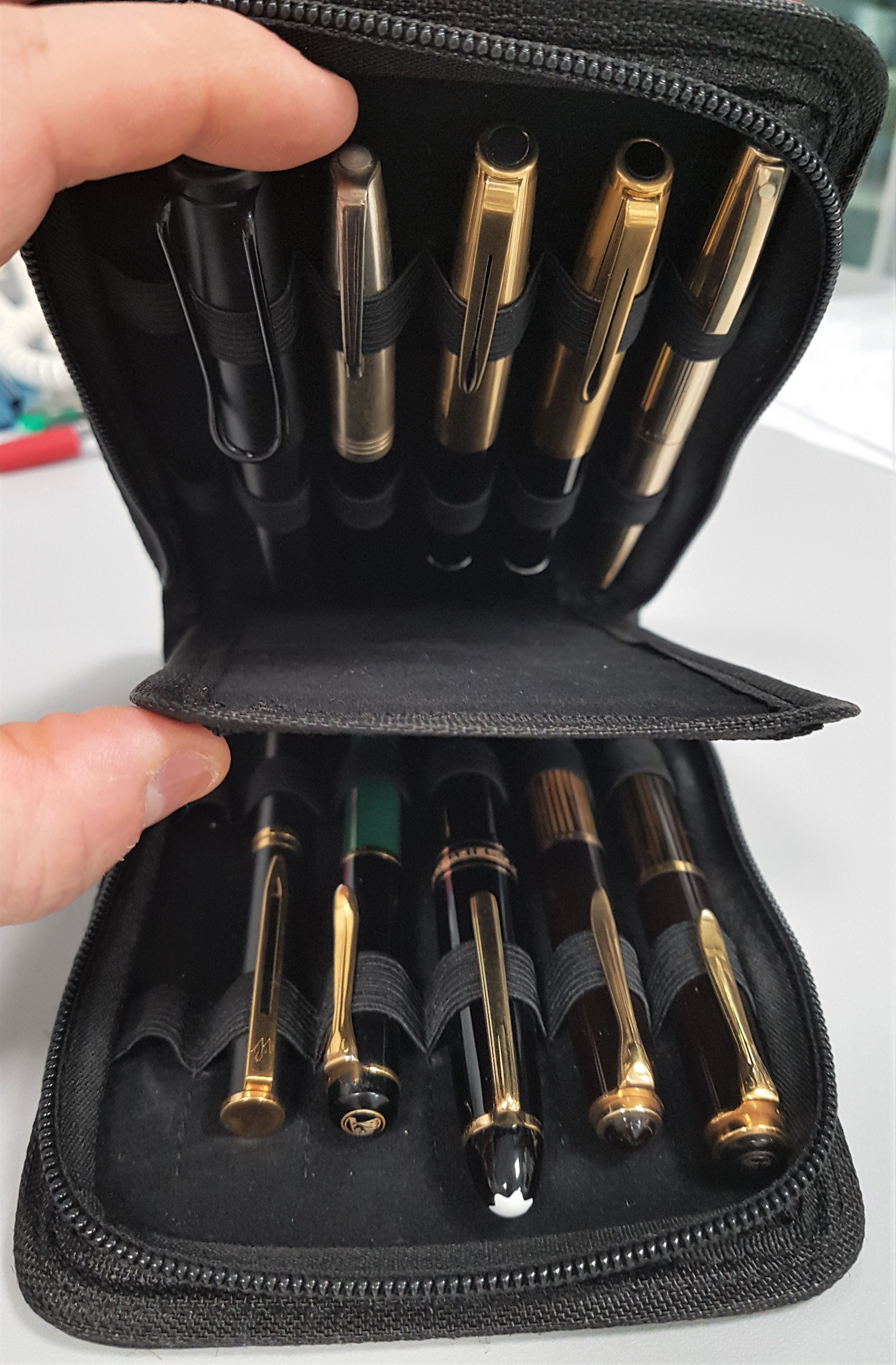 Io utilizzo sempre 3 penne che porto con me nella valigetta o zaino, dentro un porta penne pelikan 3 posti