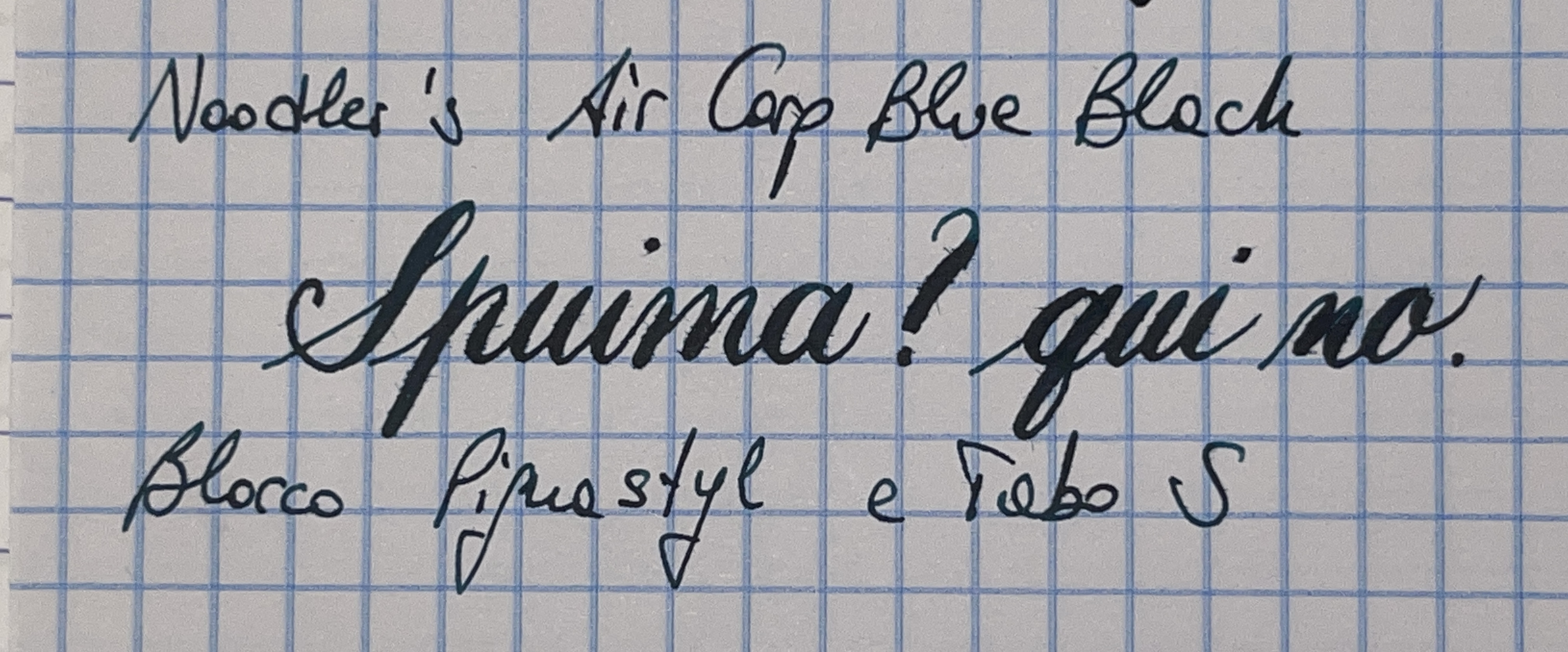 Il pennino Pilot è un po' più scorrevole - a parità di tratto e gradazione fine -, ma sono entrambi assai burrosi, quindi entriamo davvero nel campo della preferenza personale fra pennini Platinum e Pilot.