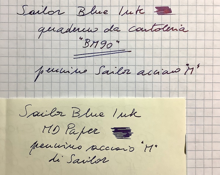 il Majestic blue gli somiglia come comportamento, anche lui molto saturo, intoppa le penne, produce sheen, sbava su carta patinata, va leggermente diluito se occorre. Sulla carta da fotocopia va bene, perché in genere più porosa e assorbe.