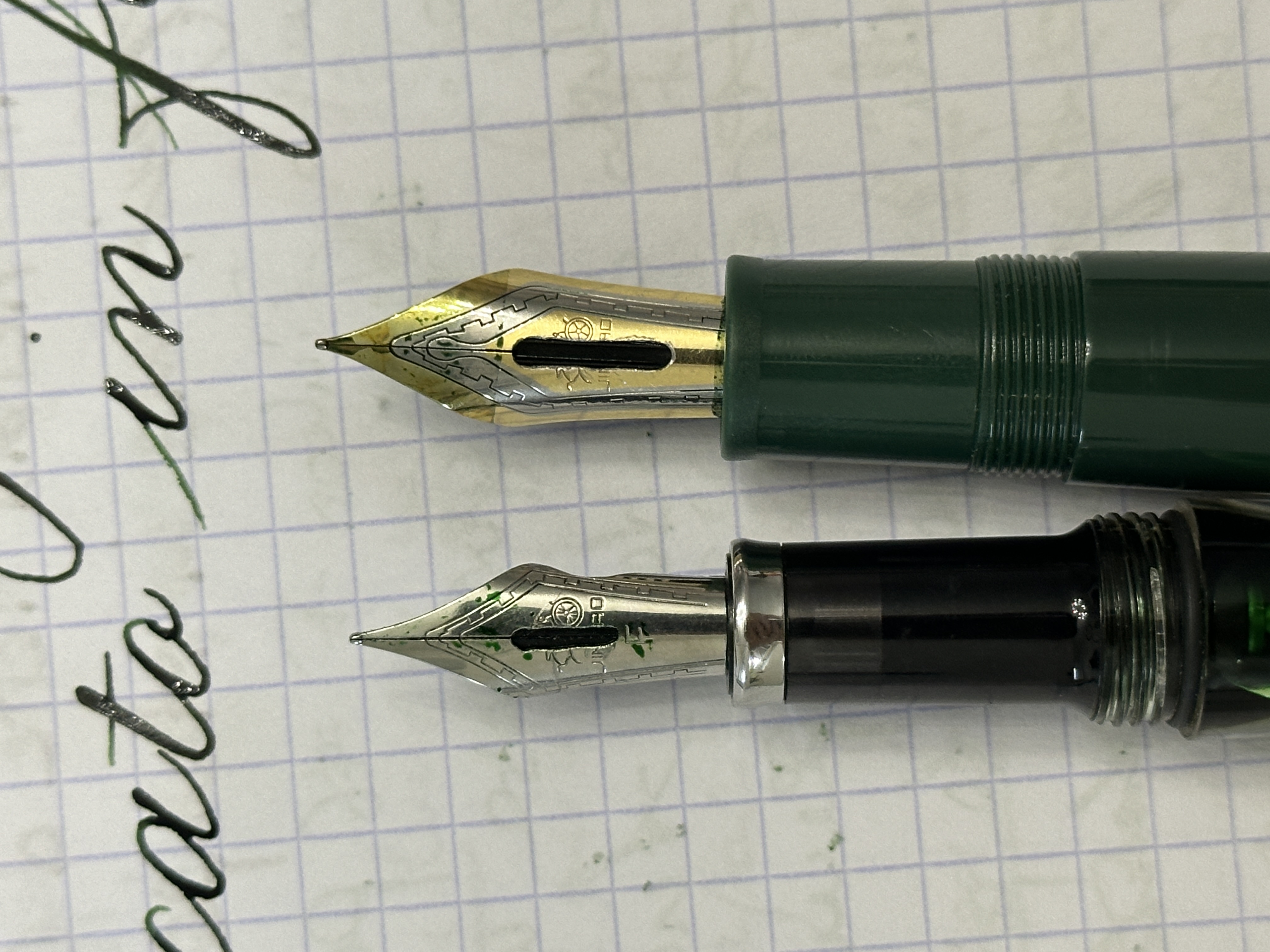 Effettivamente la prova non può essere un confronto diretto perché il pennino più grande è diverso e non paragonabile (perché più lungo, perché si tiene la penna in modo diverso, ecc.)
