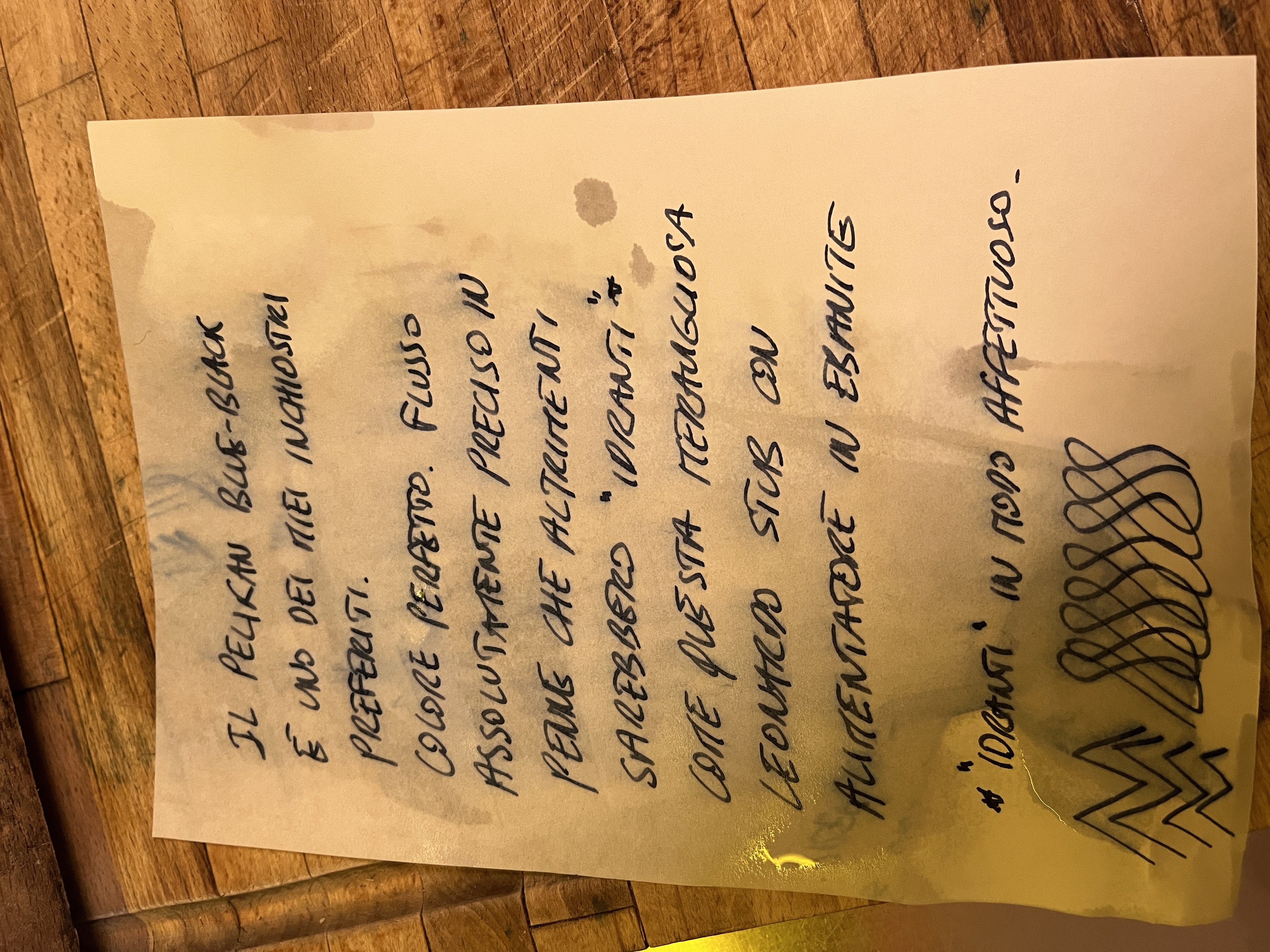 Prima prova del Blue Black in sostituzione del Royal Blue 4001 sempre Pelikan su Aurora 88 Nizzoli e devo dire che la penna, per me che son mancino, non ha un flusso eccessivo e non rischio le sbavature che col Royal erano quotidiane...