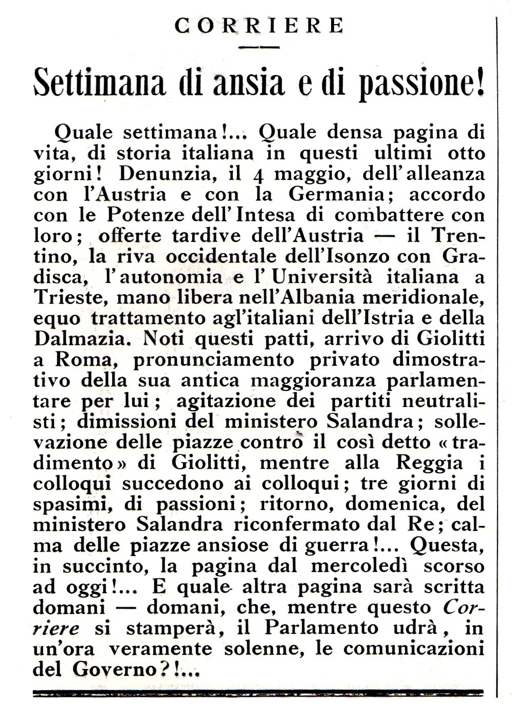 Per l’Italia la I Guerra Mondiale iniziò il giorno seguente.