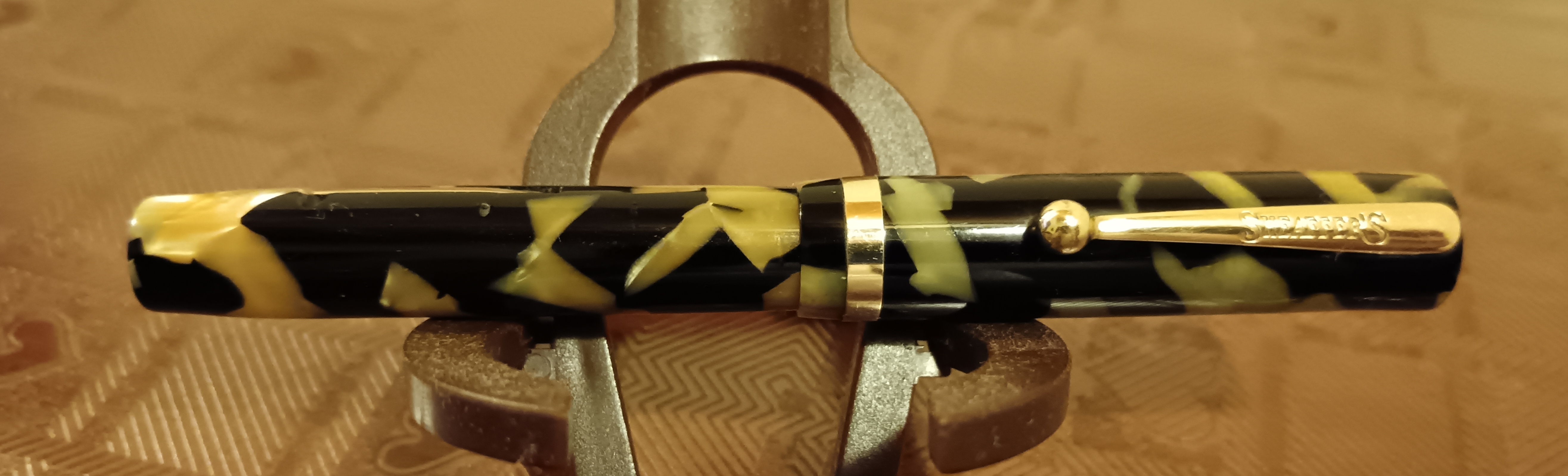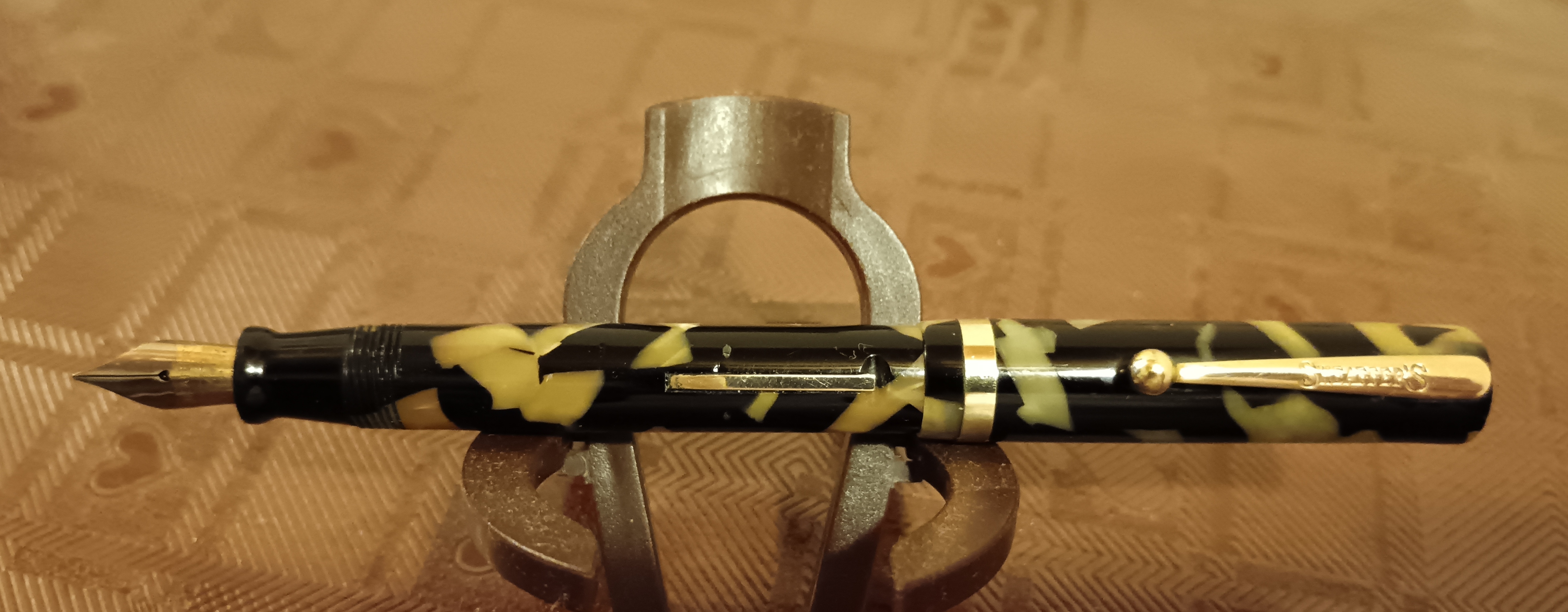 Sheaffer Lifetime Flat Top Junior in celluloide, pennino Fine semiflessibile. A levetta laterale