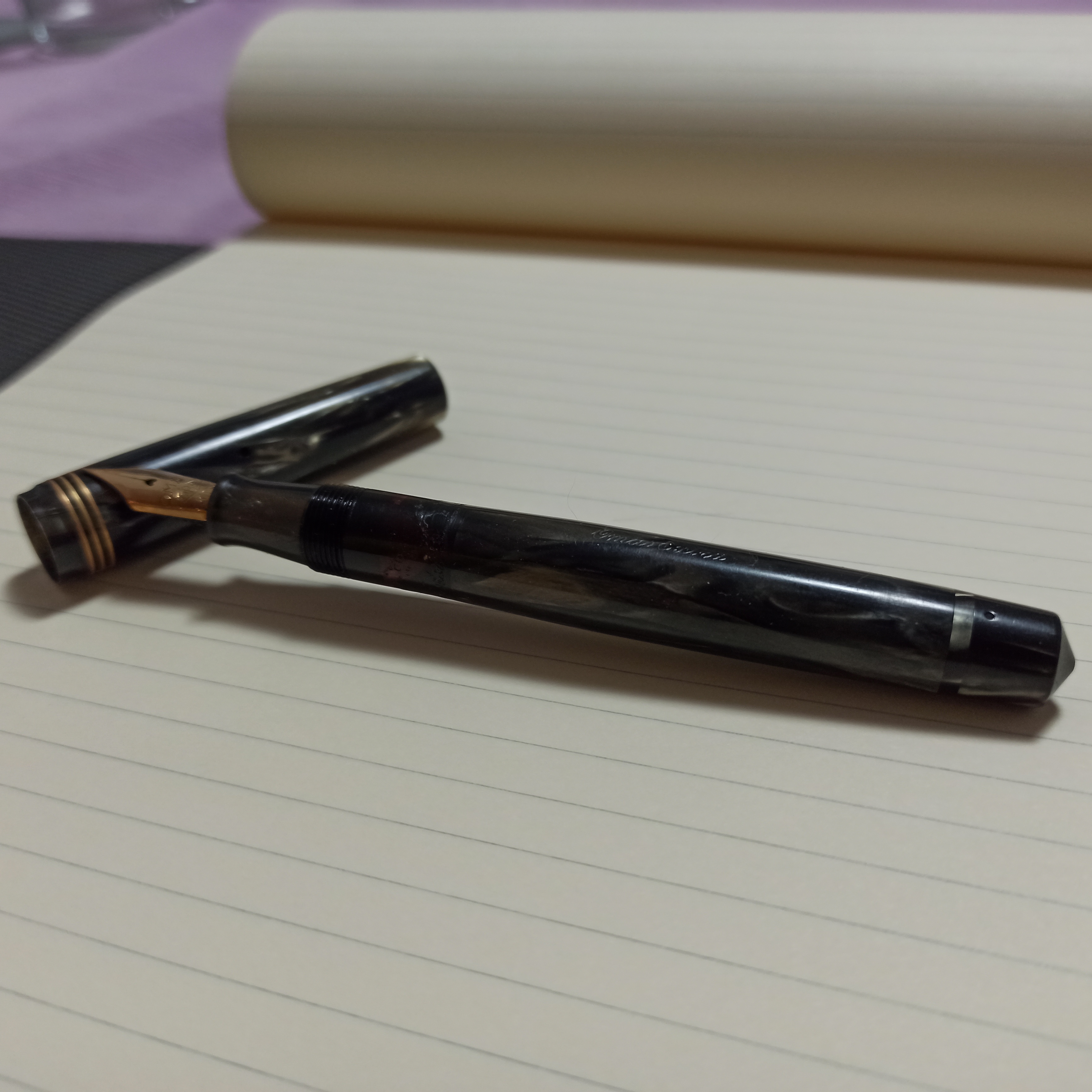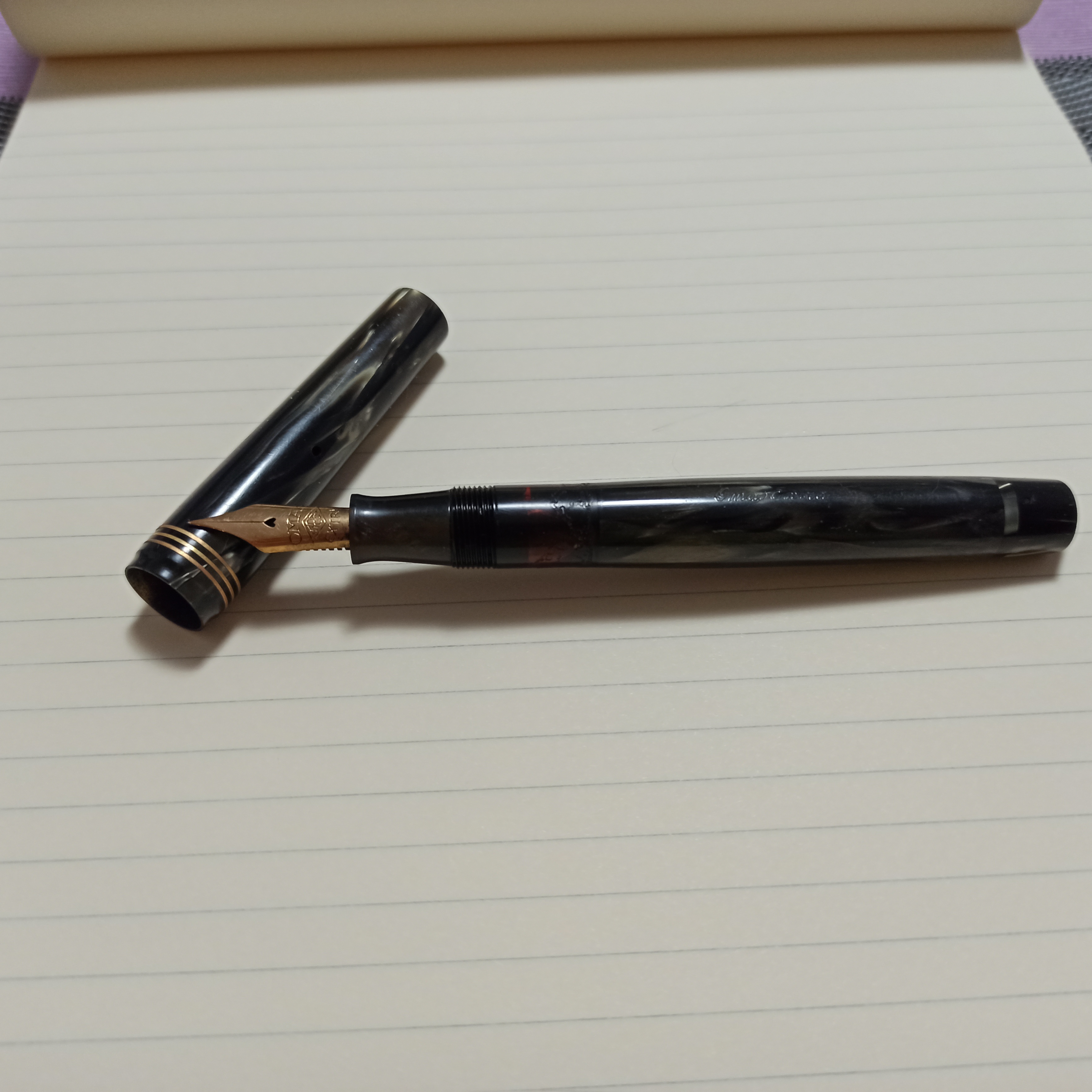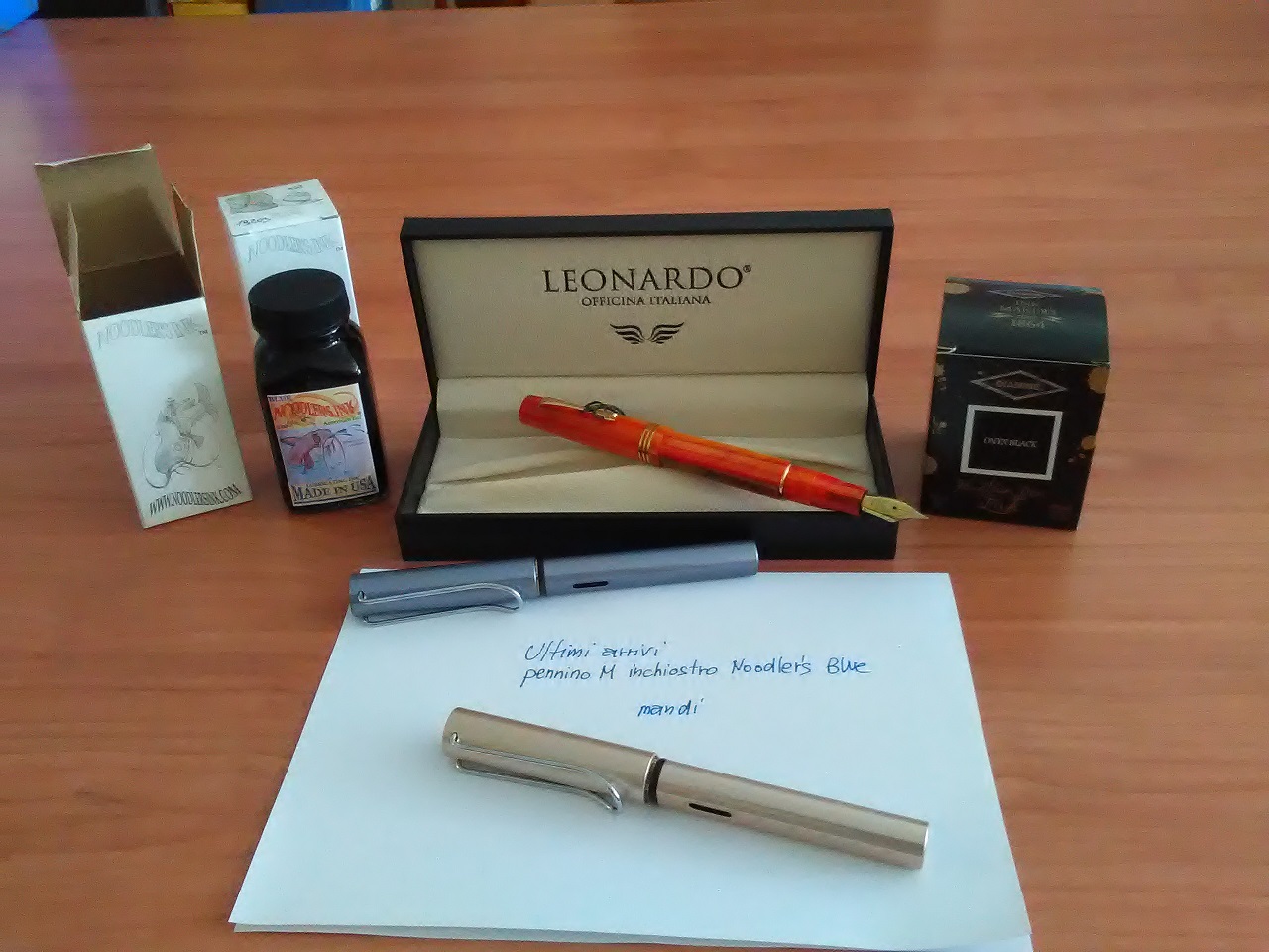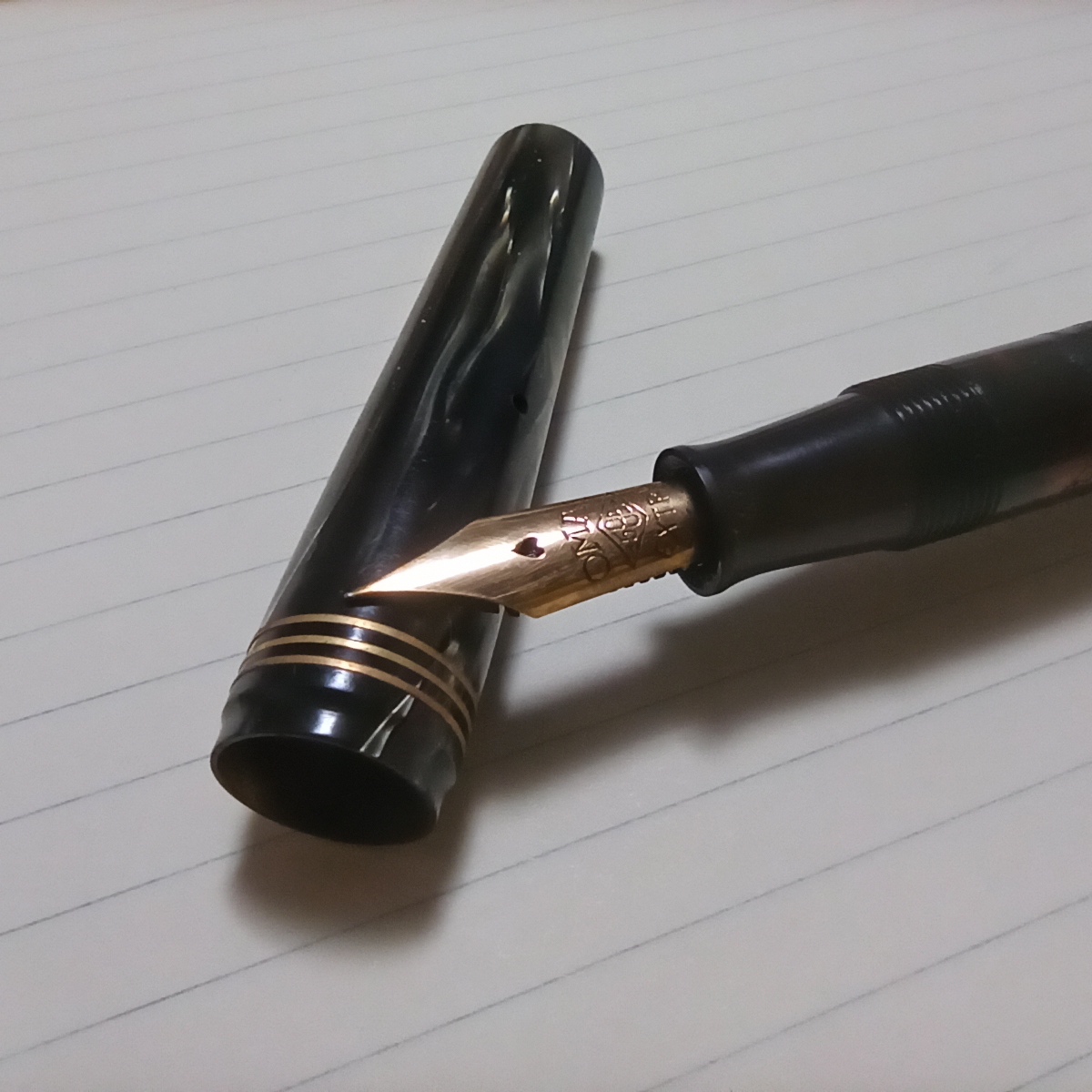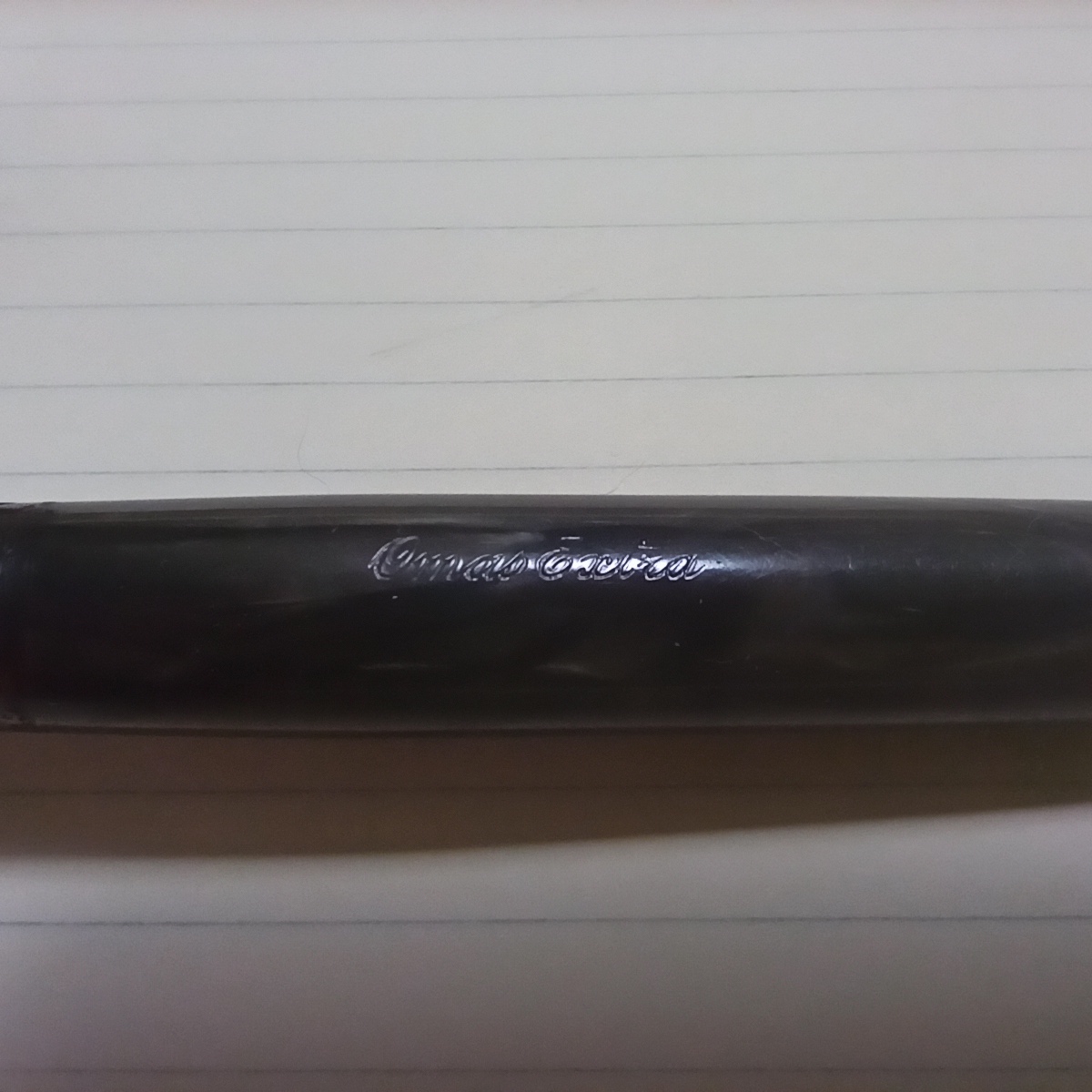 la penna l'ho acquistata usata, dotata di pennino F morbido e già caricata con un bel nero Diamine Onix Black che non conoscevo e apprezzo. Ho già ordinato una boccetta da 80 ml. La penna viene venduta con i classici tagli EF - F - M, non è previsto un pennino stub.