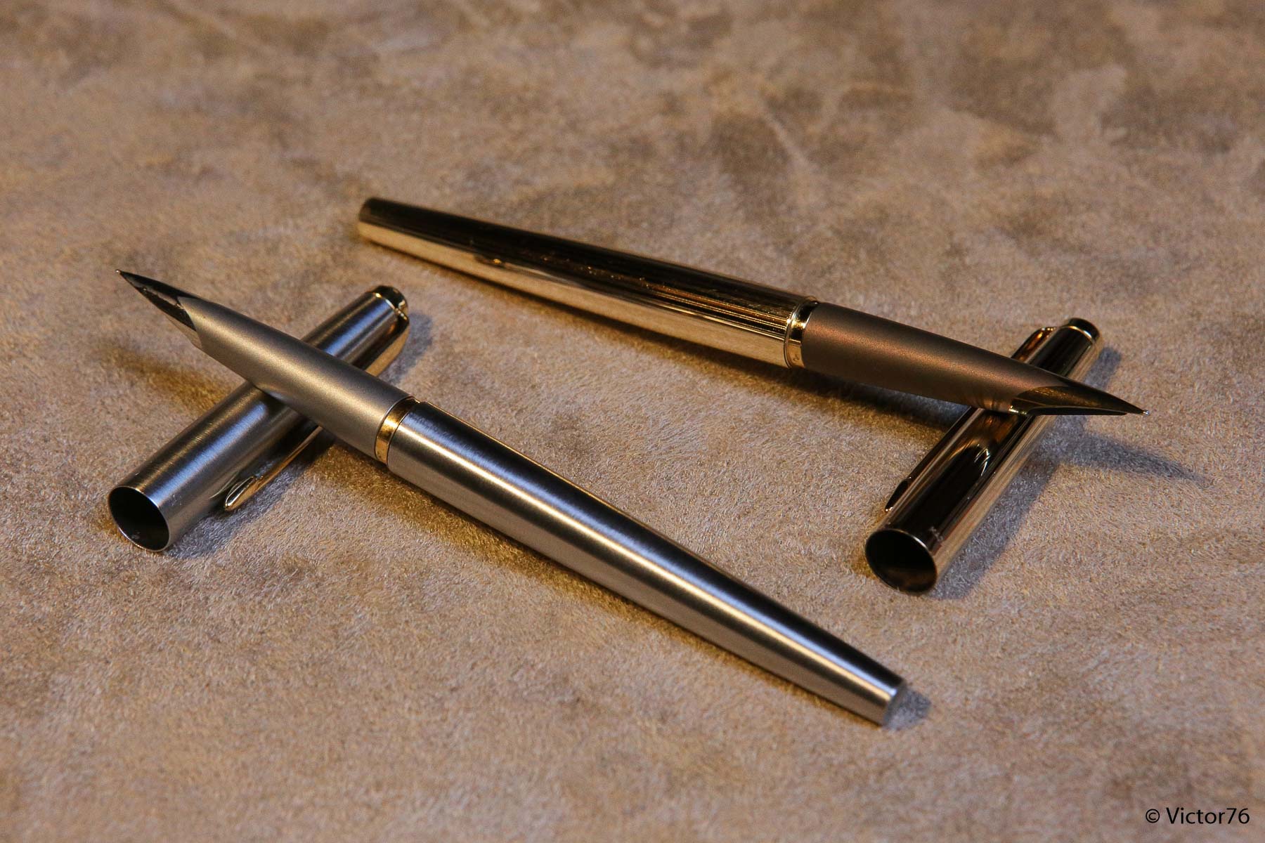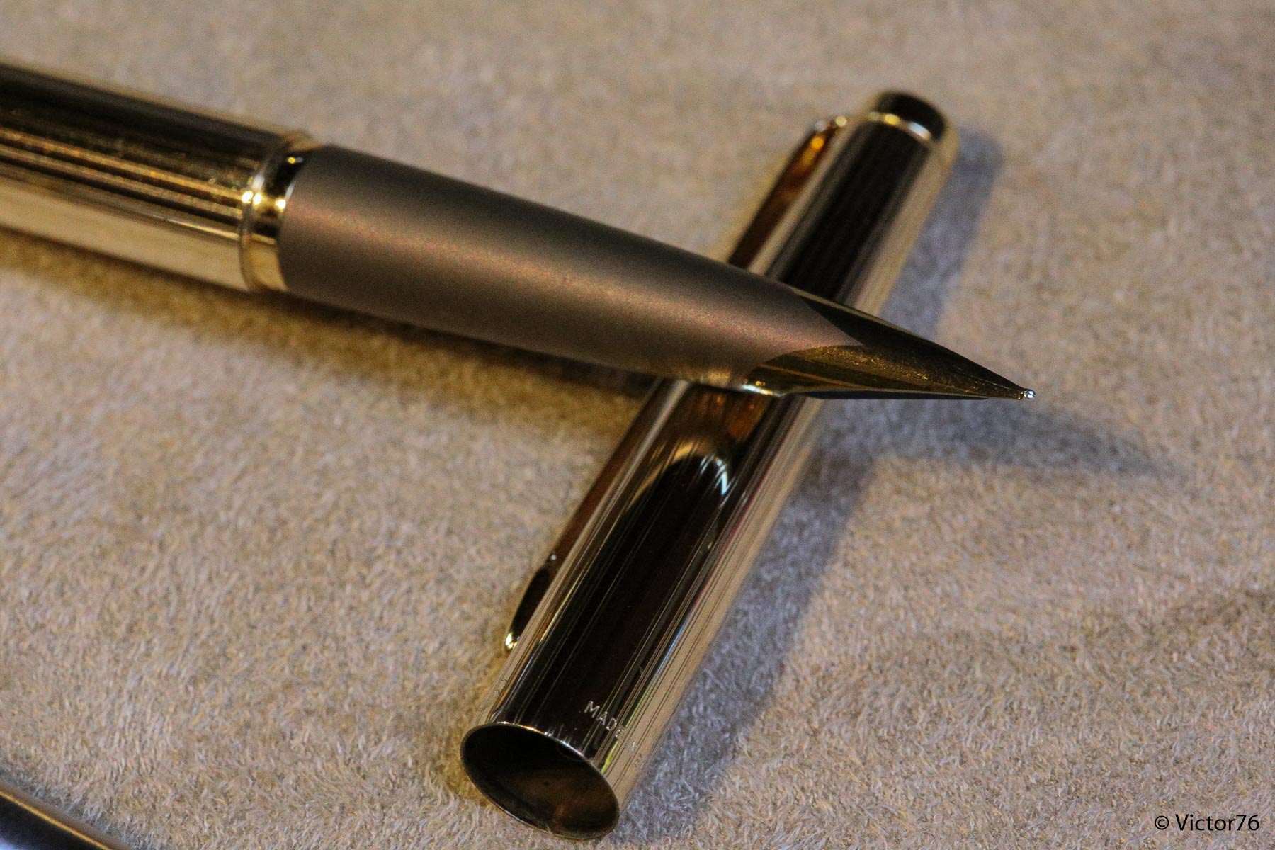 Attualmente scrivo con questa anonima grigio perla ha cui ho messo un pennino Waterman Ideal, prima non ne voleva sapere appena la fermavo poche ore non scriveva più.