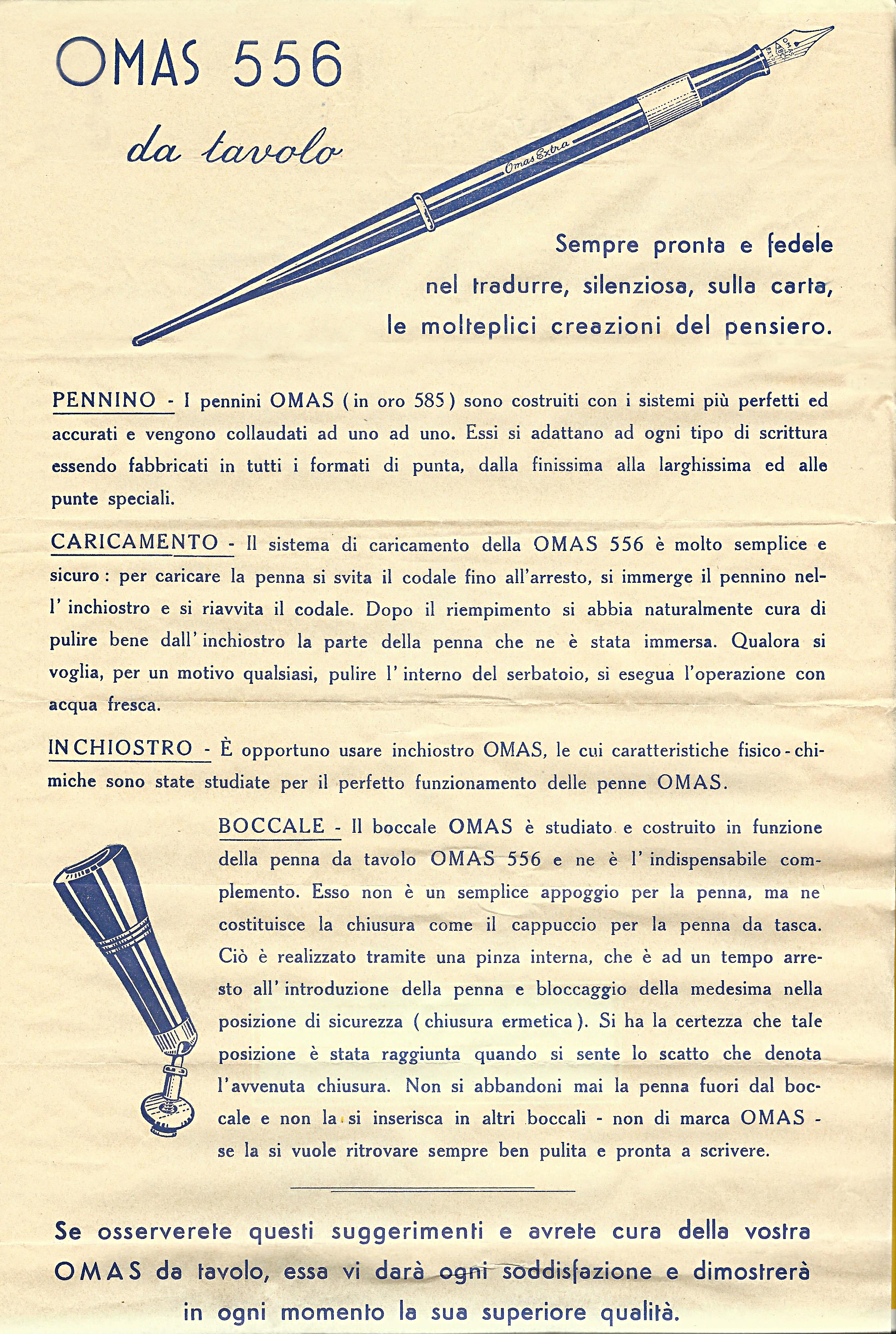 E' un foglietto delle istruzioni sullo stiloforo Omas Extra 556, datomi da francoiacc insieme ad uno stiloforo da sistemare.