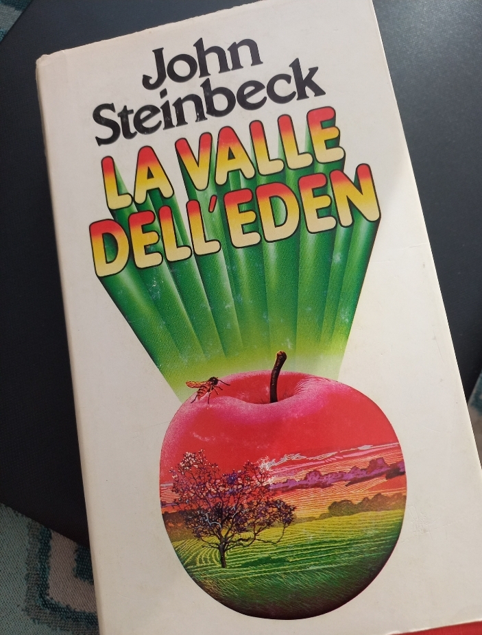 Questo Steinbeck, dalla irresistibilmente brutta copertina fine anni 70. Il libro è potente, come tutto quello che ho letto dell'autore. La grafica mi fa forse venire in mente la sigla di Odeon, un programma Rai. E Daniela Goggi di sicuro.