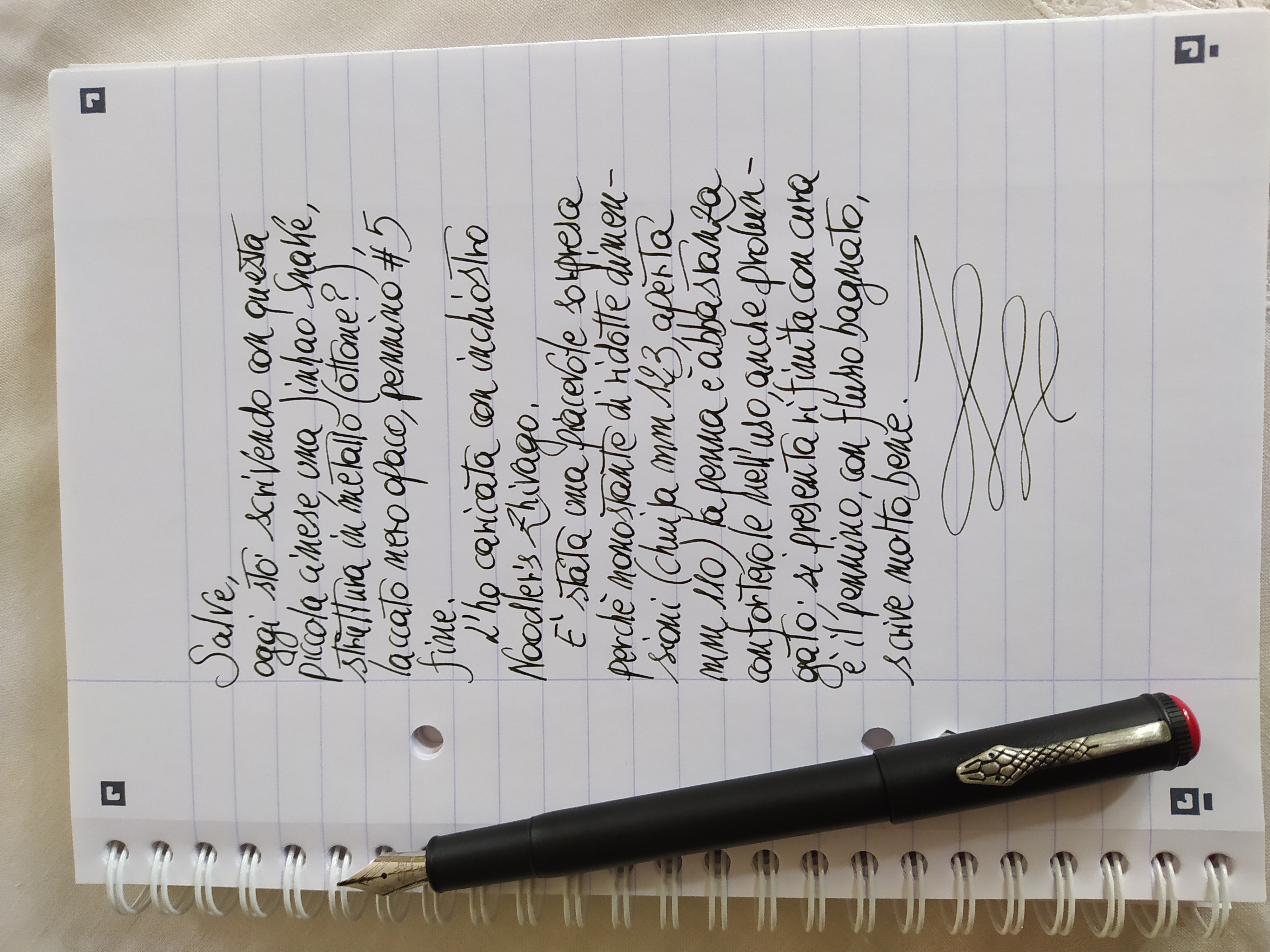 Avevo punti in scadenza su ebay....stavo per prendere l'ennesimo inchiostro poi mi sono ricordato che non so più dove metterli...poco meno di 12 euro.... paragonata al fine della A2 majhon o moonman a dir sì voglia scrive molto meglio.