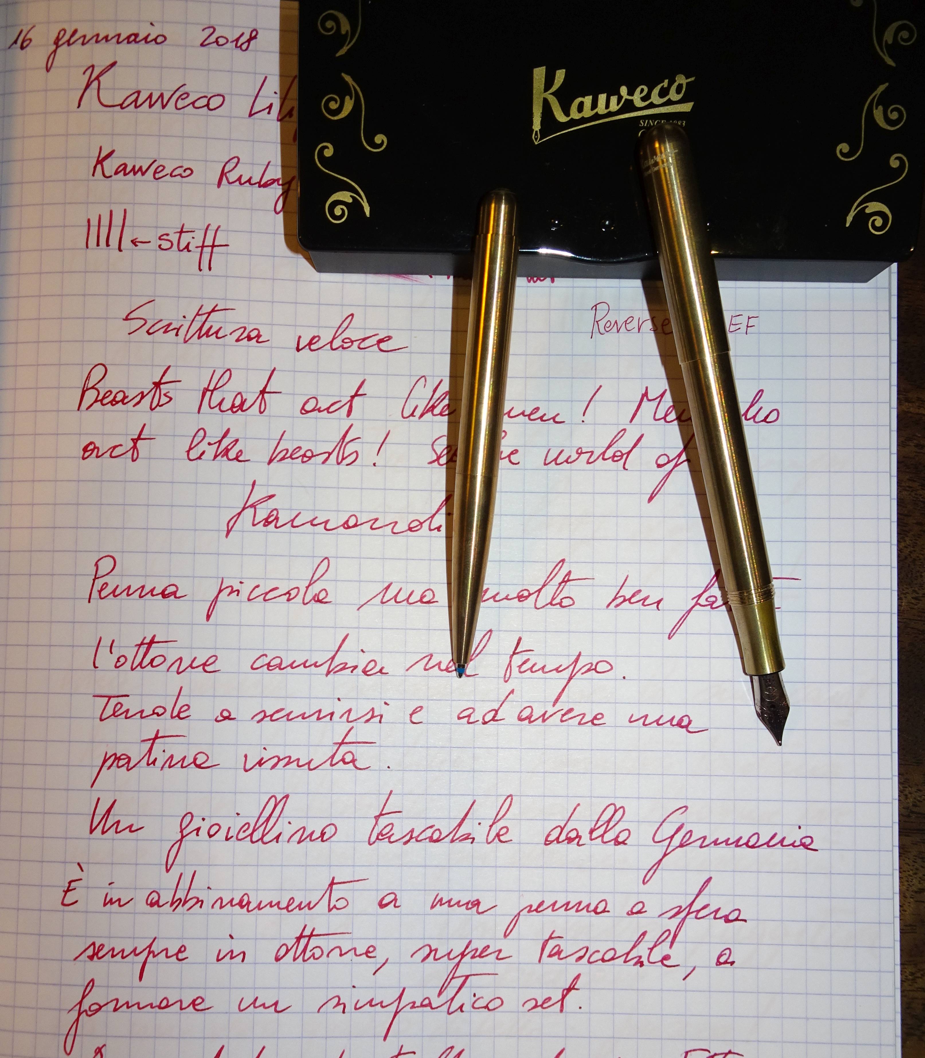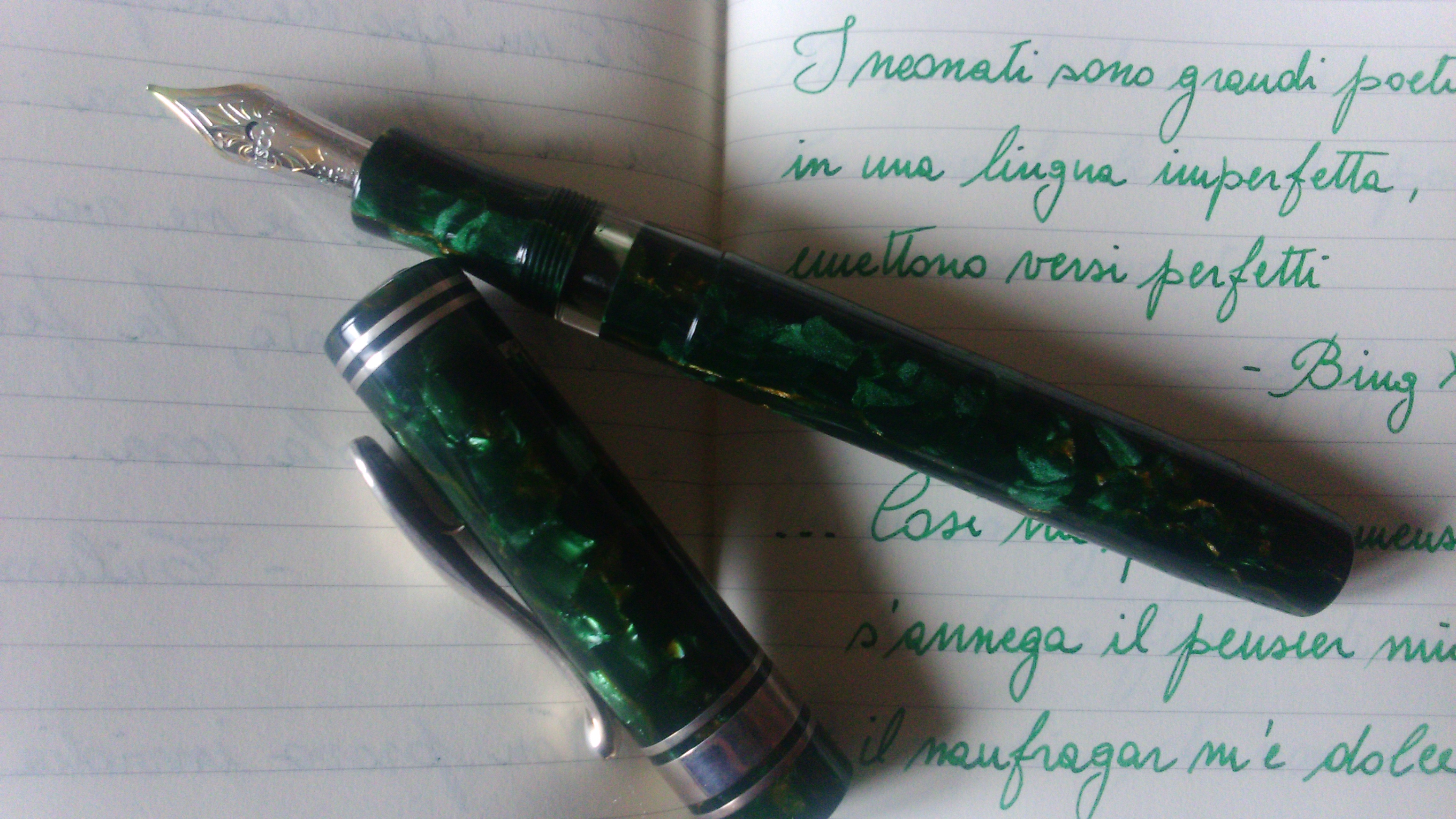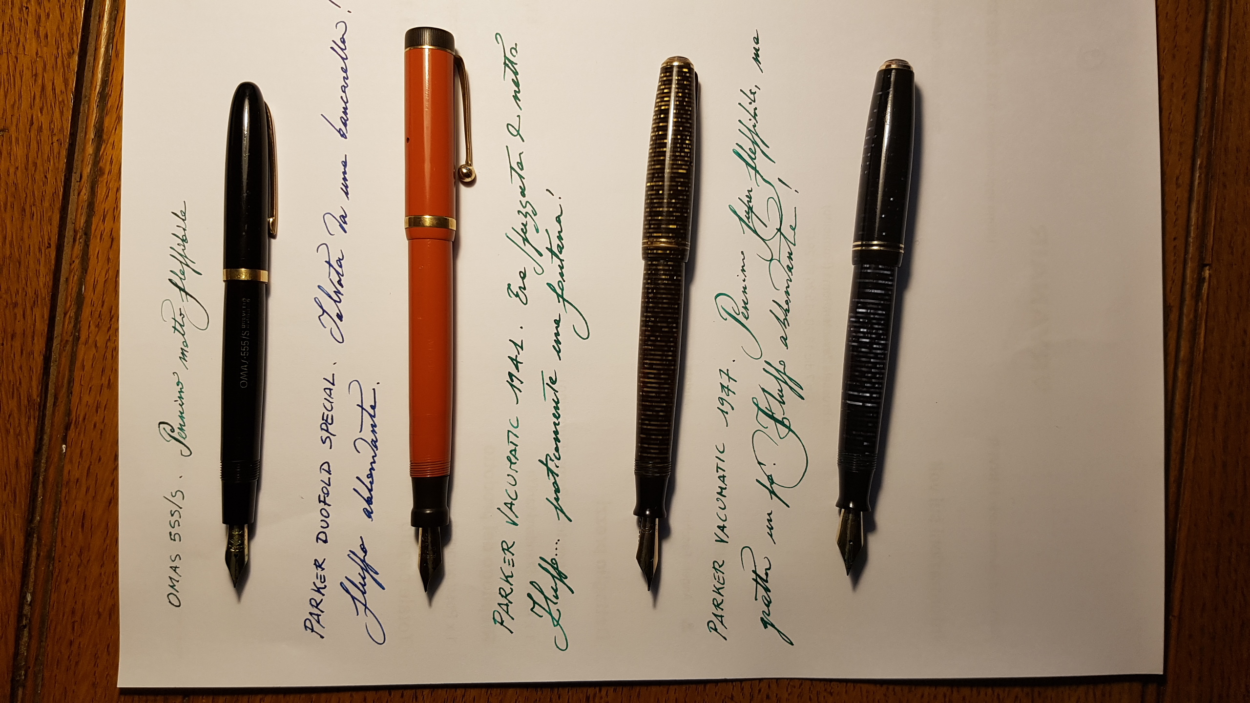 Per anni (tipo 10-12) ho scritto solo con una OMAS 555/S, probabile anni '50 trovata su ebay e data per non funzionante. Infatti la guarnizione in sughero era solo un ricordo. Non mi sono perso d'animo e me ne sono fatta un'altra, sempre in sughero, adattata perfettamente e limata alla fine con carta 1000. Pennino fino e flessibile, instancabile.