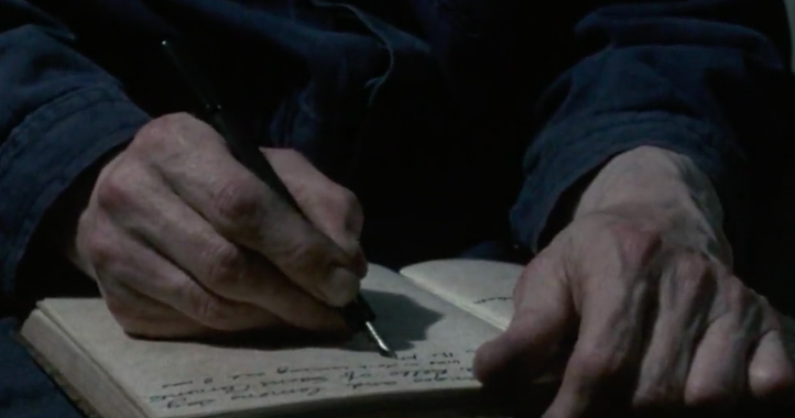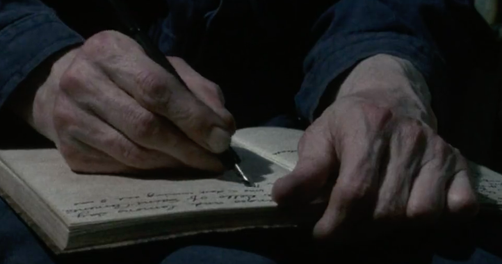 Scena esame da La meglio gioventù, il saggio dinosauro scrive con una stilo la cui impugnatura mi ricorda tanto una Waterman economica: