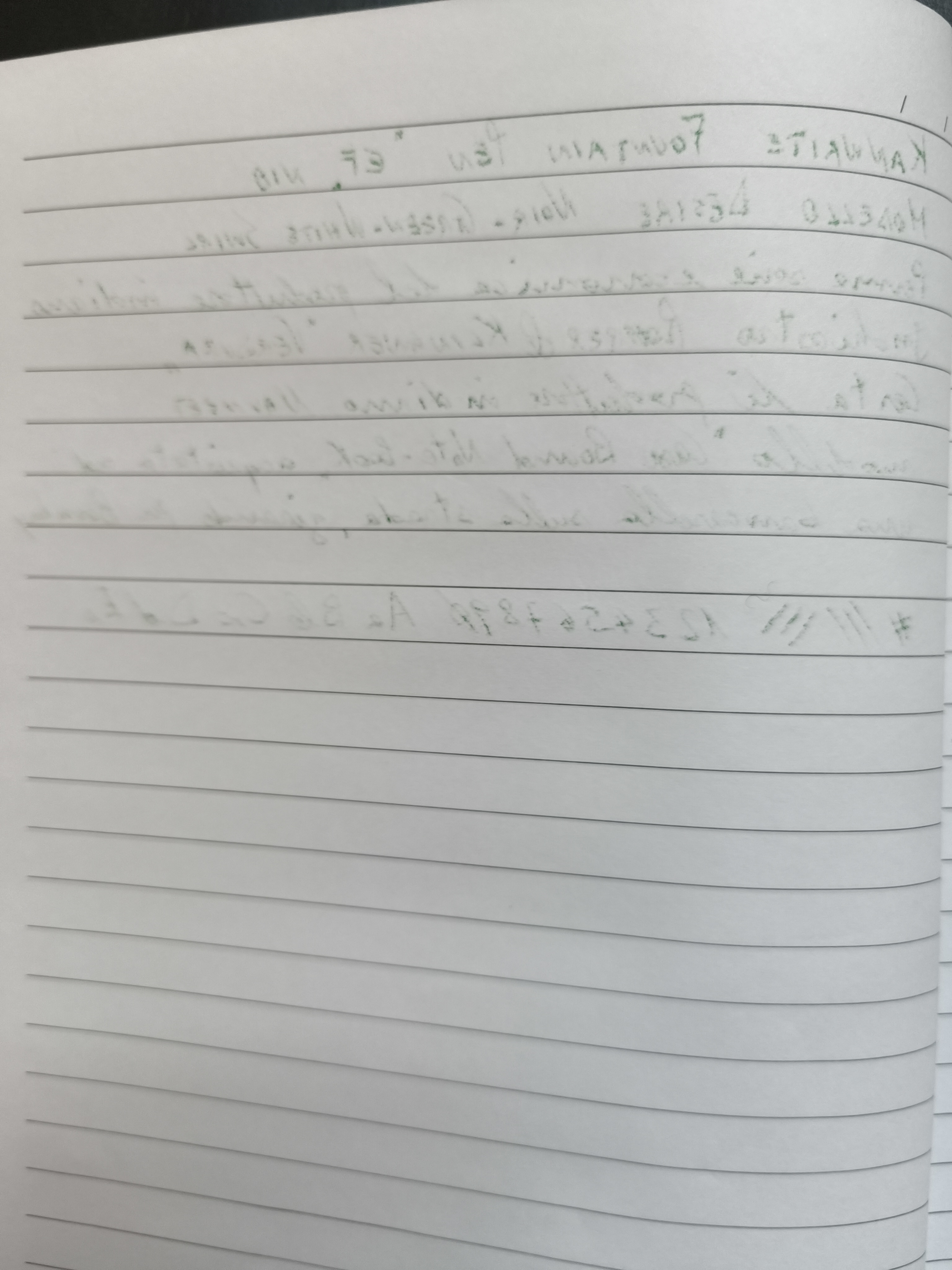 Allego due foto della mia prova di scrittura e di un retro di una pagina, poiché avevo anche acquistato un note-book da una bancarella (sono stato a Mumbai per lavoro nei giorni scorsi).