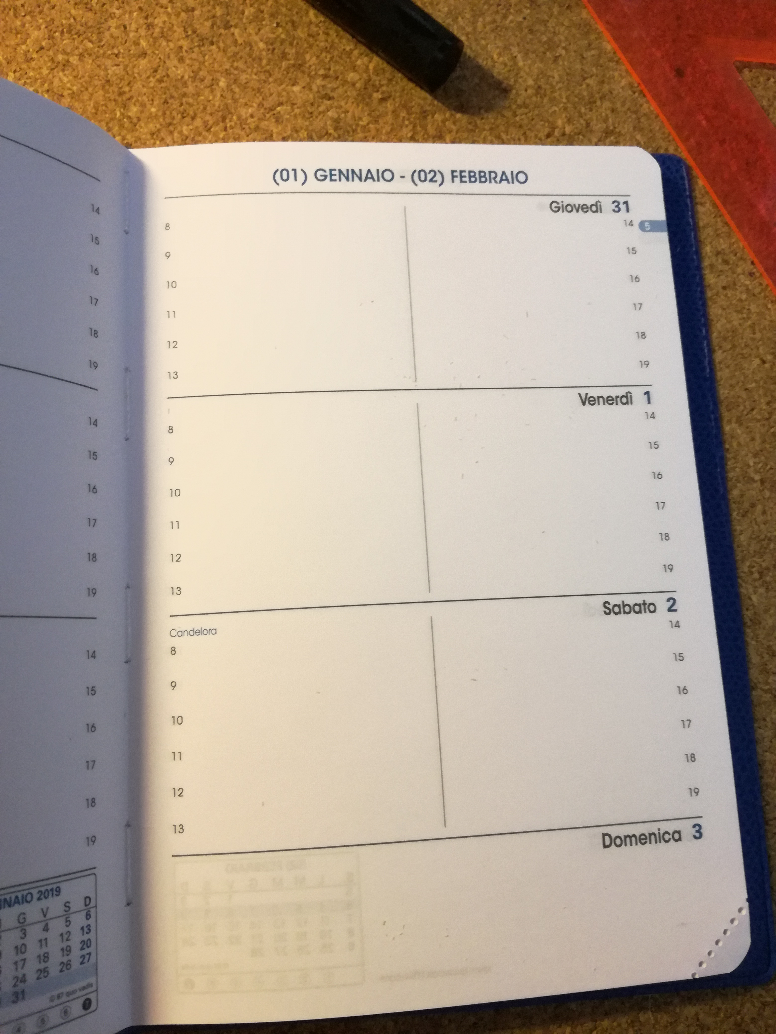Per il 2019 io ho optato per la stessa soluzione dell'anno scorso, un'agenda giornaliera acquistata da Buffetti.