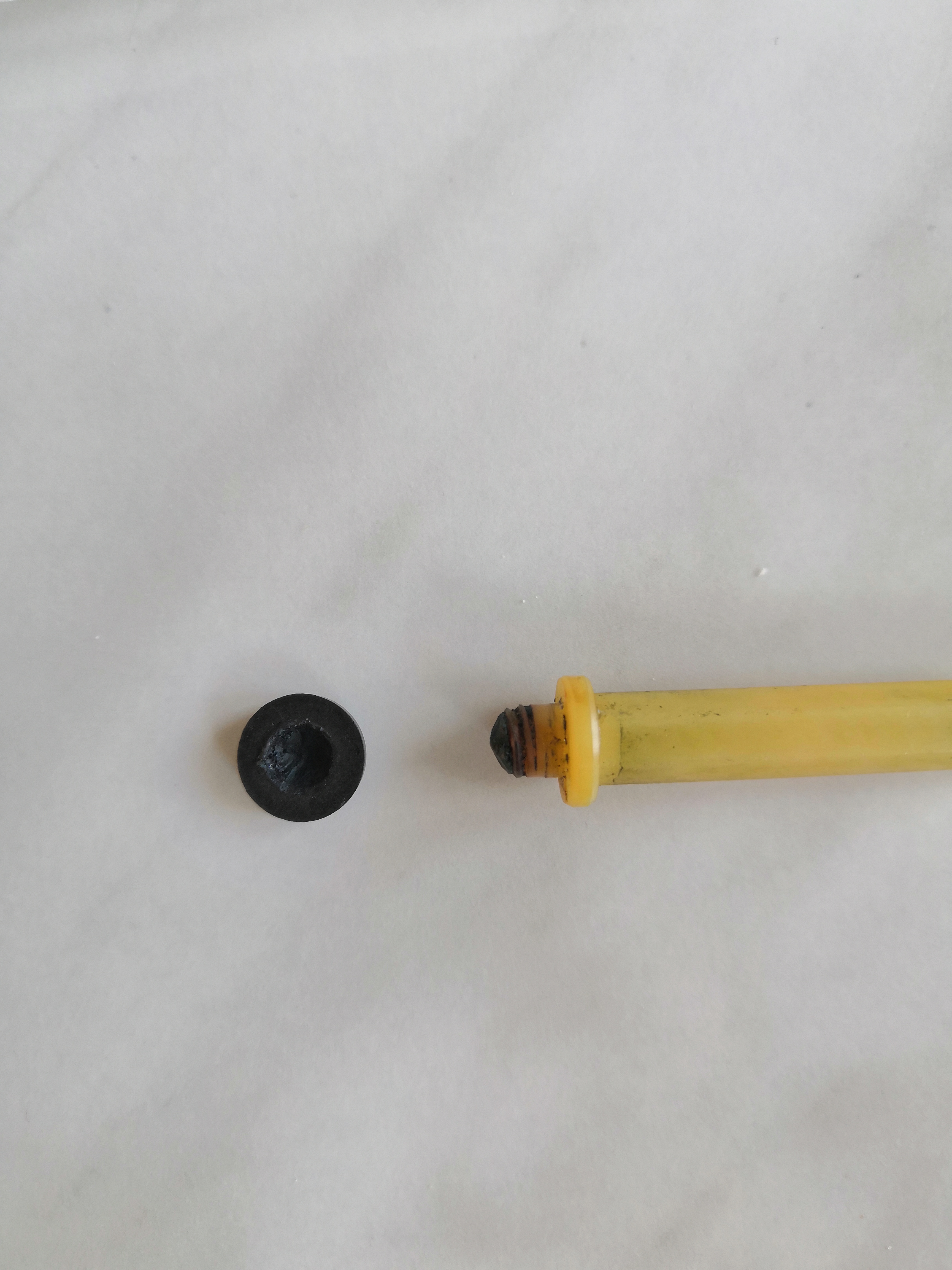 Il guaio della parte filettata dello stantuffo che si sgretola è molto comune nelle 88; il materiale plastico coi decenni si altera e diventa fragilissimo. Il lavoro migliore è sicuramente quello di trapiantare una nuova "coda" sull'alberino; si può ricavare da una vite in Nylon da 5mm. Però non conosco le tue capacità e l'attrezzatura che hai a disposizione. Il mio consiglio è quello di lasciare perdere il pacco di rondelle originali e sostituirlo con due o-ring 9x5x2. Forse varrebbe la pena di provare se con un solo o-ring il dado circolare di fermo riuscisse ad imboccare abbastanza filettatura da tenerlo. Potrebbe essere sufficiente a restituire la funzionalità alla penna senza dovere fare nulla. Varrebbe la pena di provare.