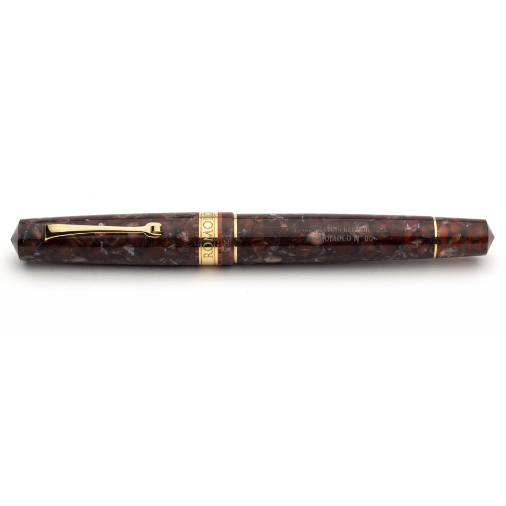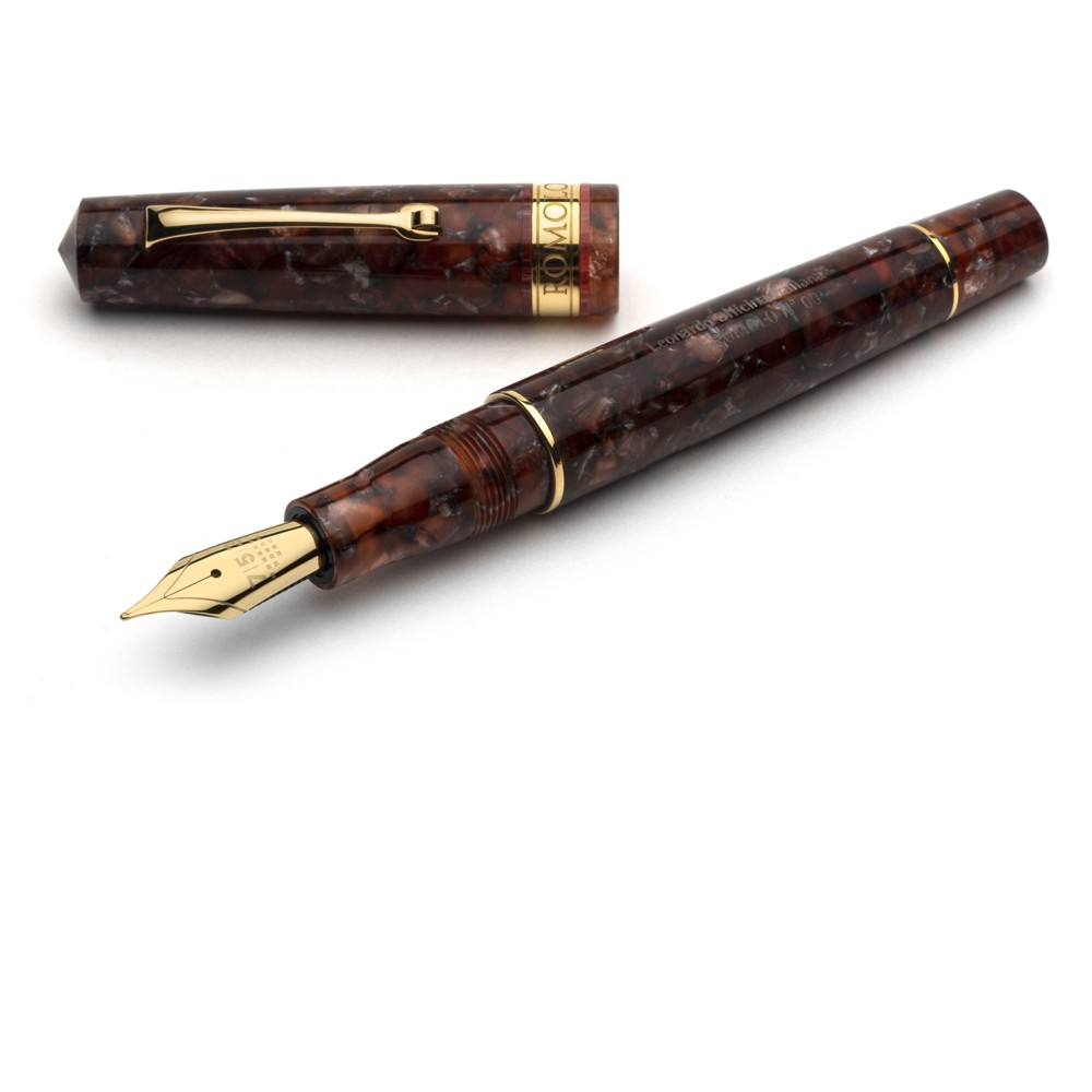 Distribuita in esclusiva da Stilo Fetti e prodotta da Leonardo Officina Italiana . Realizzata solo nella versione Stilografica , La penna è Dedicata al Grande Fondatore di Roma "ROMOLO" Il I RE . Il Materiale è un acrilico speciale con rifiniture in laminato oro . Il colore marrone rossastro della penna ricorda la terra che si estendeva vicino al fiume Tevere. Versione limitate e numerate in numeri Romani in solo 100 esemplari al mondo. Il pennino della penna è in acciaio di color oro flessibile in diverse tipologie di grandezza. Extrafino , Fino , Medio , Broad e Stub . Doppio sistema di caricamento: A cartuccia ( Standard tipo Pelikan ) oppure a stantuffo Svitando completamente il fondello del serbatoio .