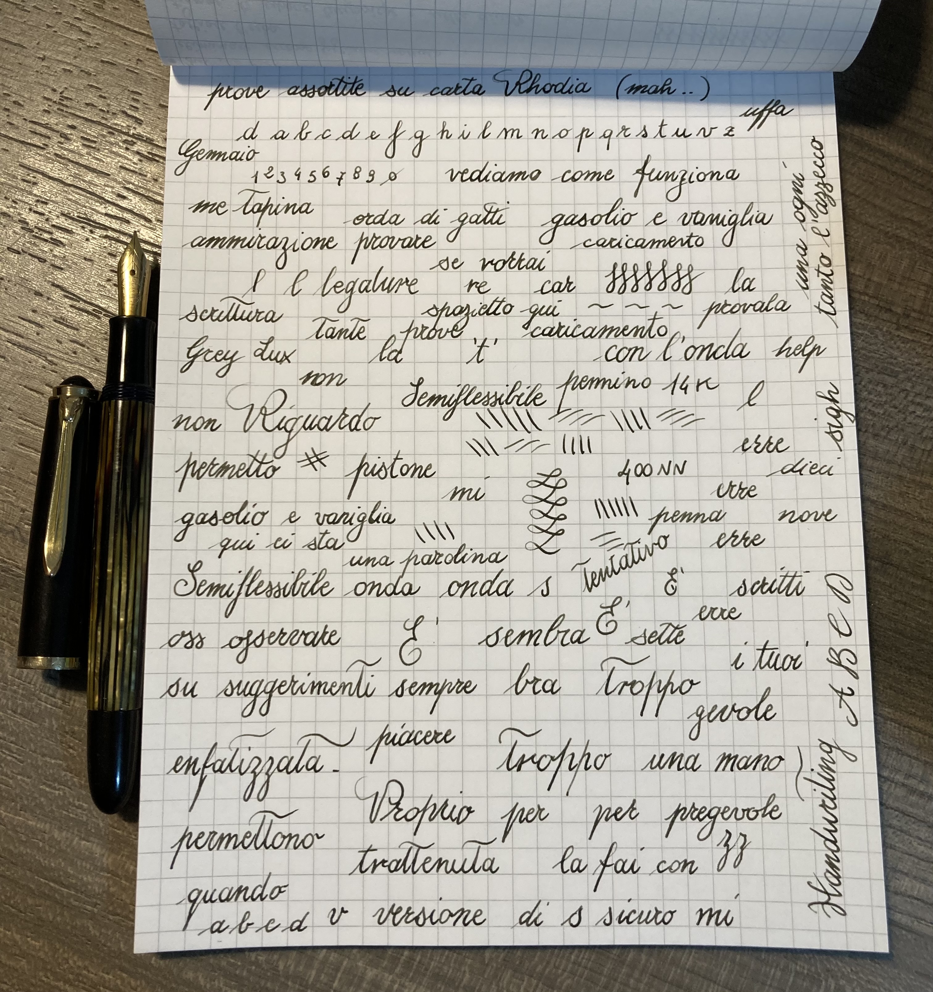 Oddio grazie! Sono proprio delle prove. Intanto ho capito che mi ci vuole un pennino che abbia tratto iniziale più sottile, poi tanta perseveranza. Non mi viene proprio naturale scrivere così grande.. Riproverò