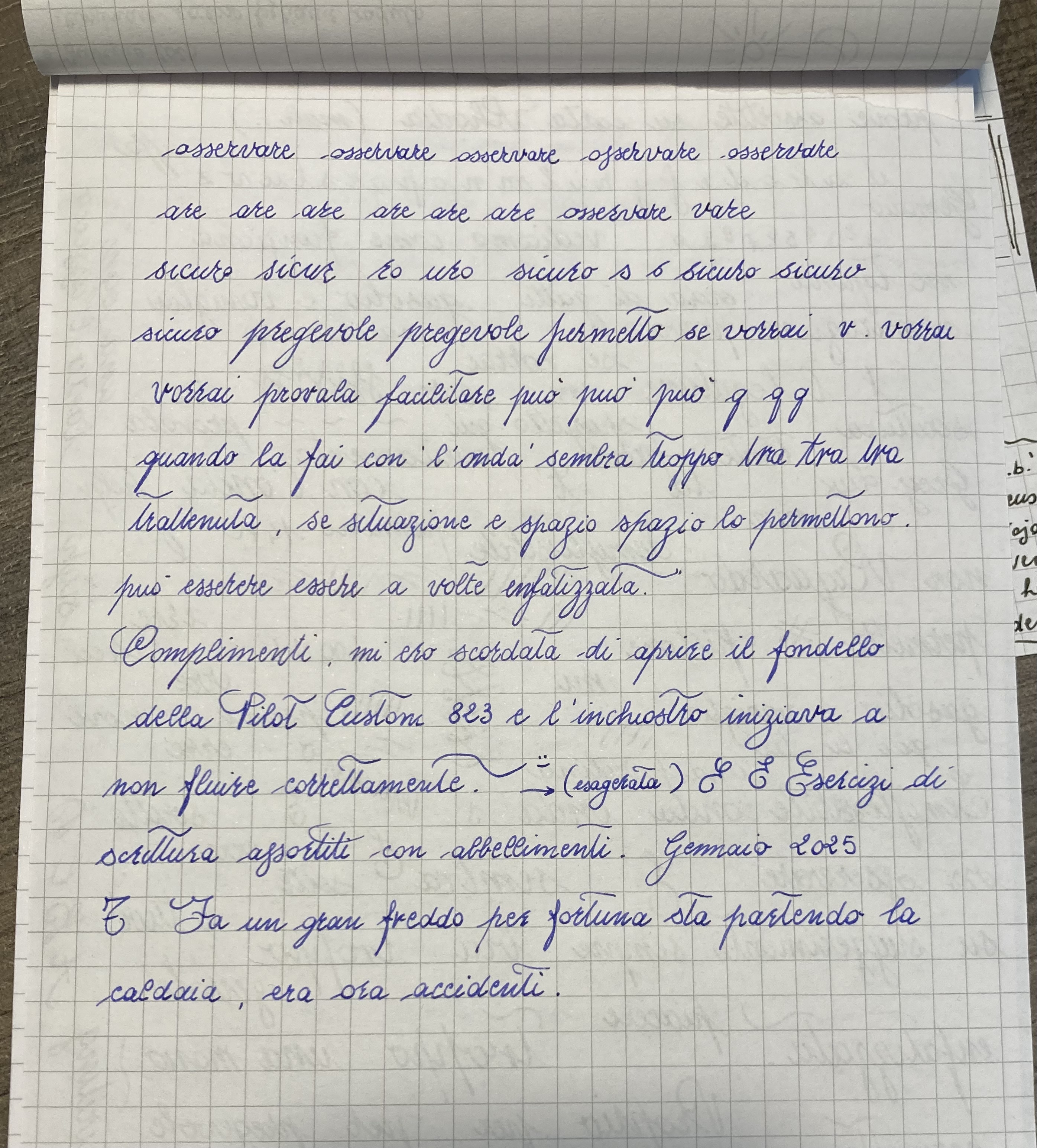 Il mio corsivo fa pena ma sto cercando di riprenderlo in mano dopo molti anni di stampatello. Mi sono orientato sul corsivo americano non so se sia la scelta più semplice per ricominciare.