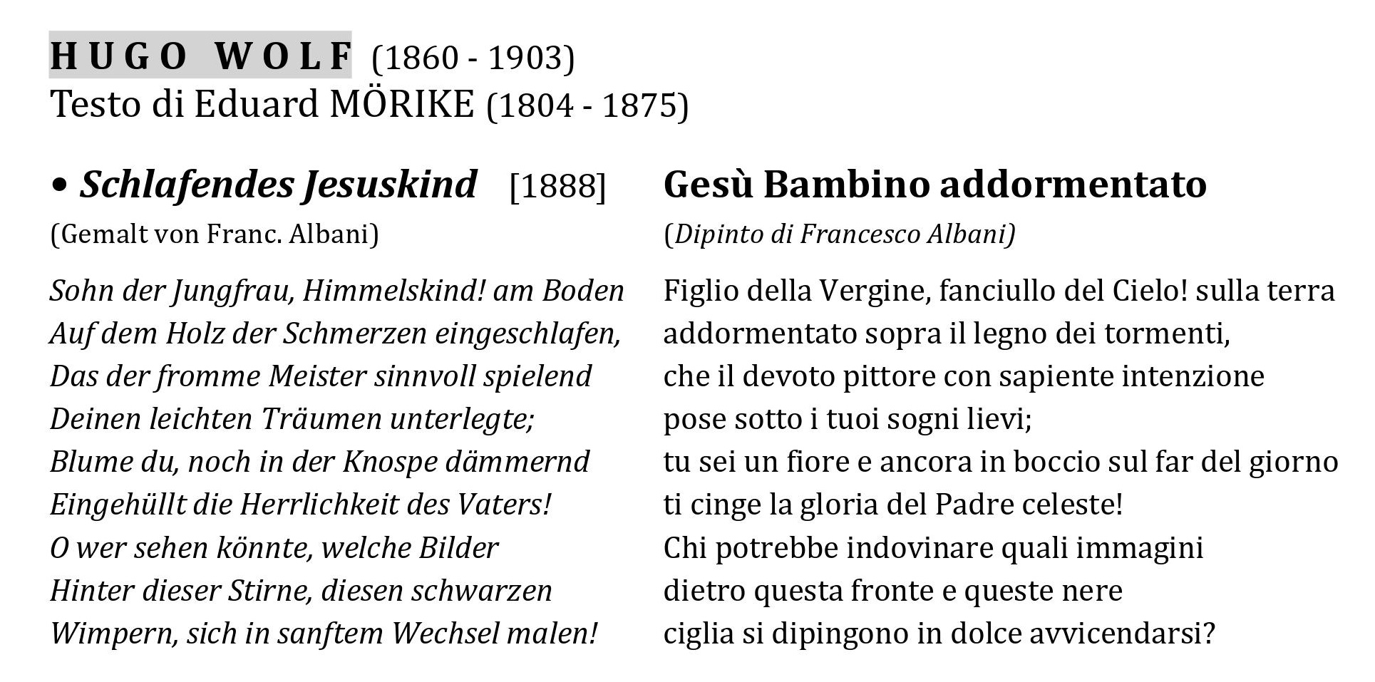 Il poeta tedesco Eduard Mörike (1804-1875) pastore luterano, compose un testo (ecfrasi) contemplando proprio una di queste “riproduzioni” all’acquaforte, e in seguito il musicista Hugo Wolf (1860-1903) lo musicò nel 1888 per canto e pianoforte (ti allego anche la mia versione italiana). Da due anni apriamo il Concerto di Natale con questo Lied, subito seguito dal suo compagno Auf ein altes Bild [1888] - Davanti a un antico dipinto...