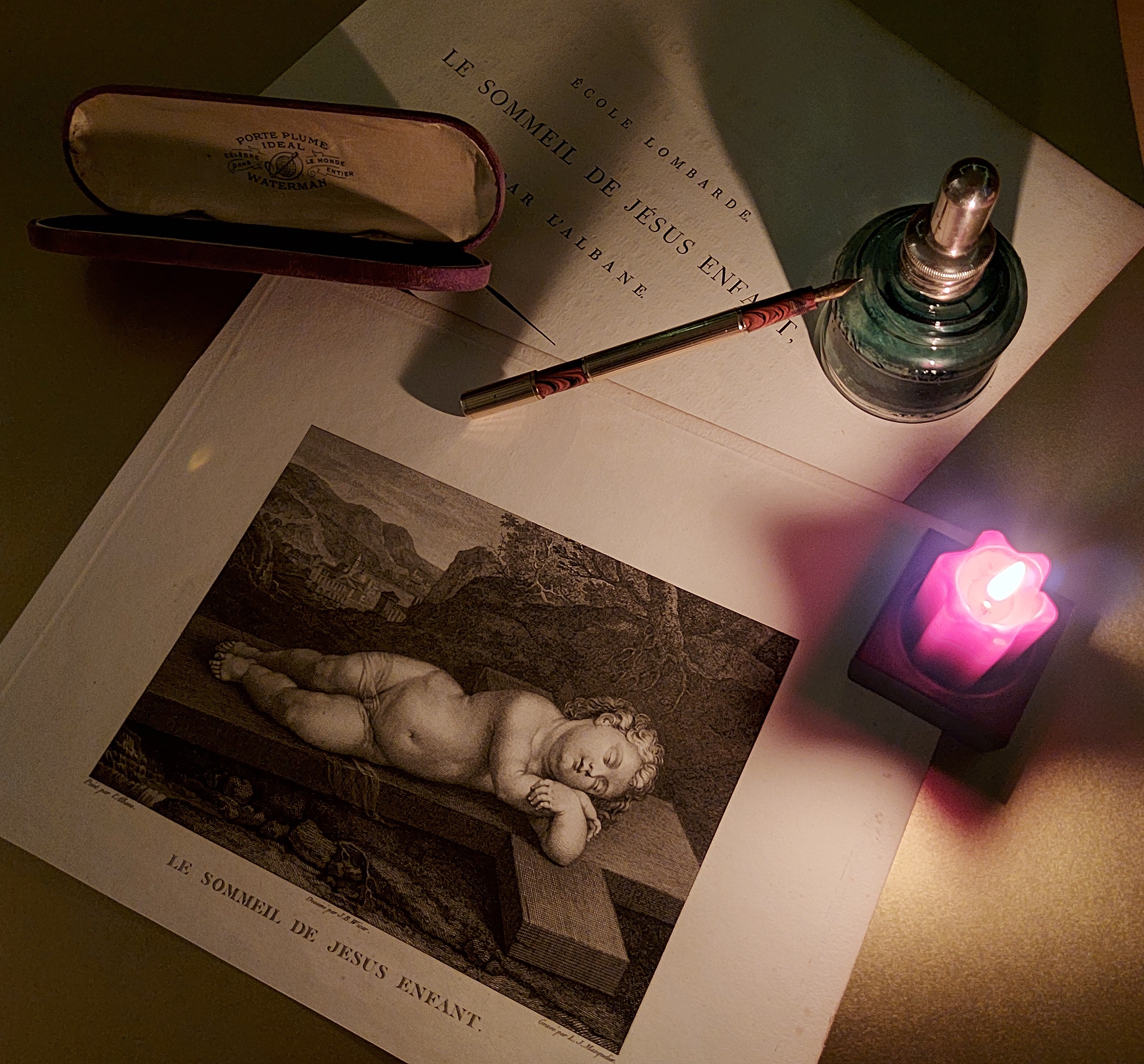 ti ringrazio di cuore per l’apprezzamento che credo intenda coinvolgere in primo luogo il soggetto principale dell’immagine da me realizzata, ovvero l’inconsueta rappresentazione del Gesù Bambino addormentato su una piccola croce che già ne prefigura la Passione, una stampa da me acquistata presso un rigattiere napoletano. […]