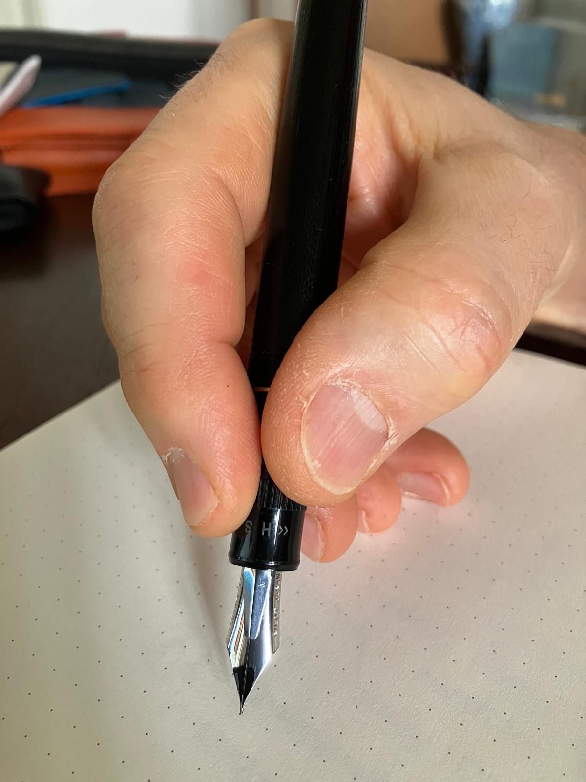 Ho re-imparato a impugnare la penna qualche anno fa basandomi su un manuale d’epoca che trattava diversi stili calligrafici. Essendo quello “calligrafico” il modo di scrivere comune al tempo, mi viene da dire che sia anche quello più corretto con le stilografiche.