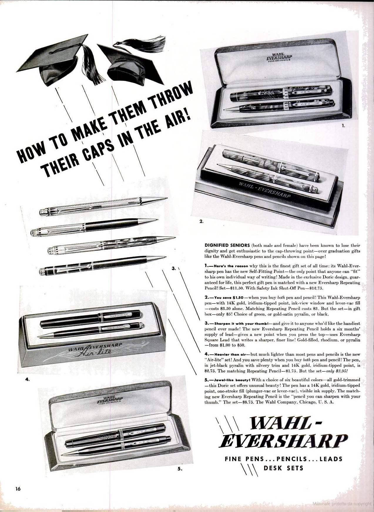 Cercando su Google ho trovato casualmente queste due pubblicità della Wahl Eversharp pubblicate su due numeri di Life del 1939.