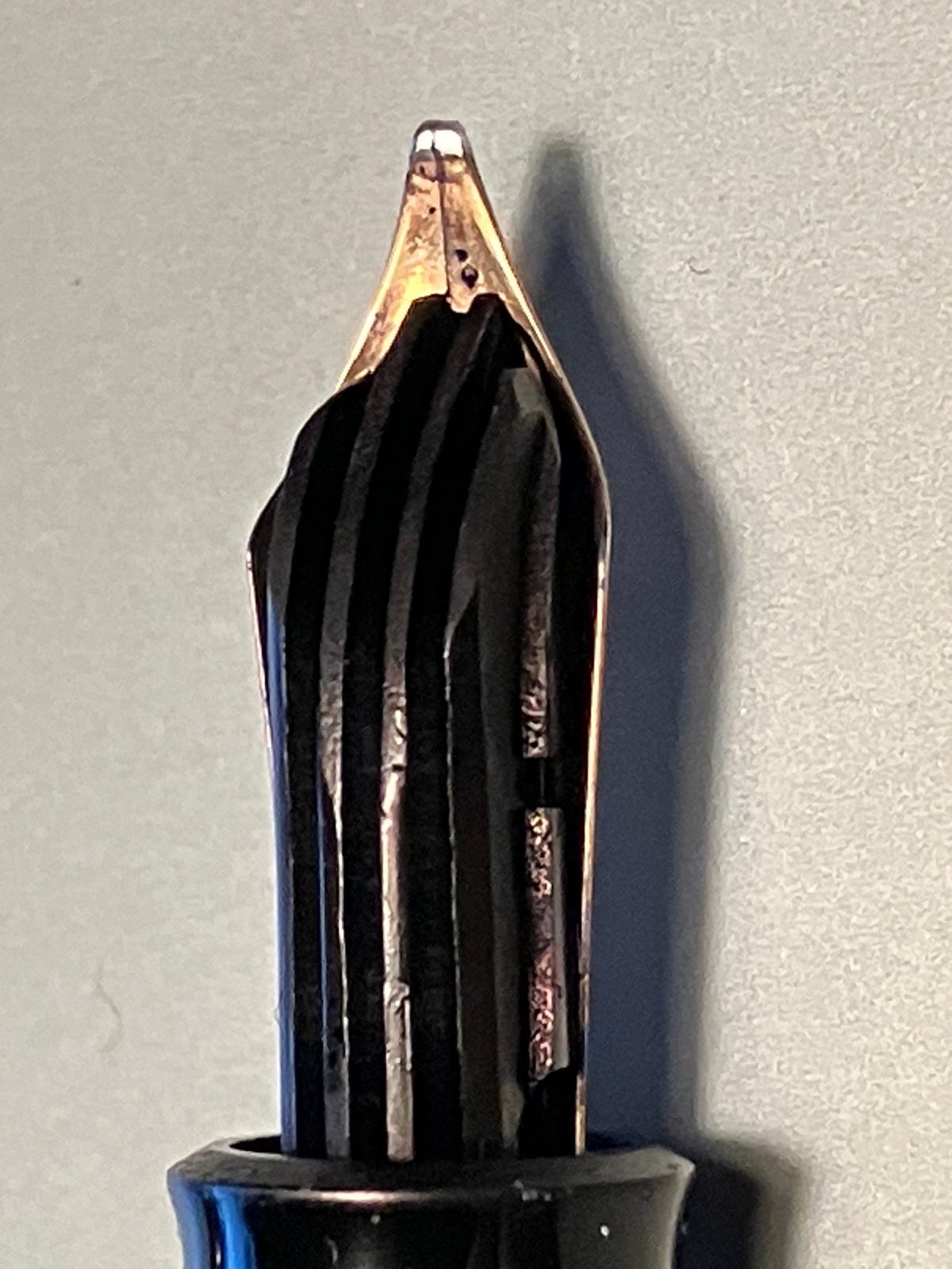Questo è dovuto al fatto che i pennini Pelikan vintage nascevano con l'iridio piatto, non a pallina.