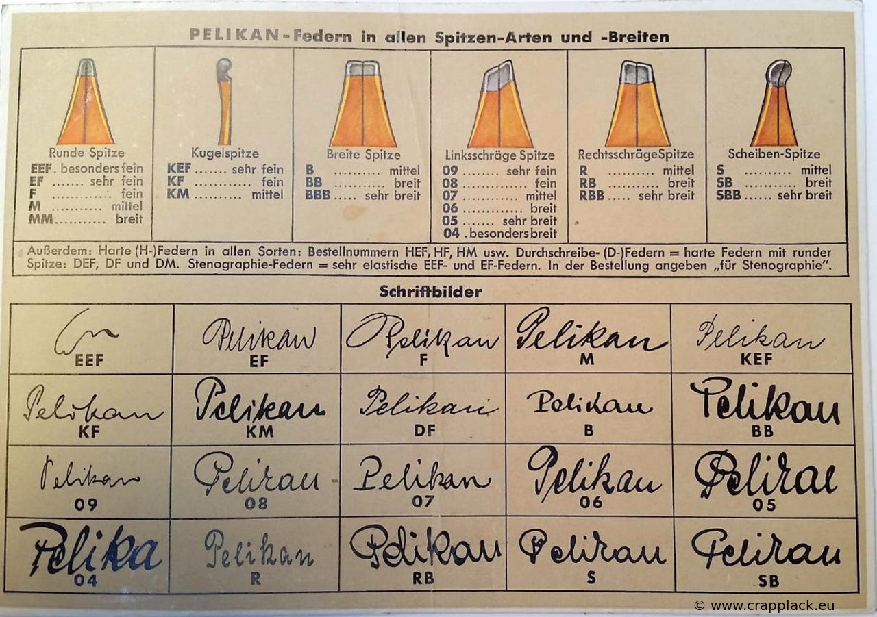qui, in questa tabella dei pennini Pelikan di allora, puoi vedere che gli stub non ci sono.