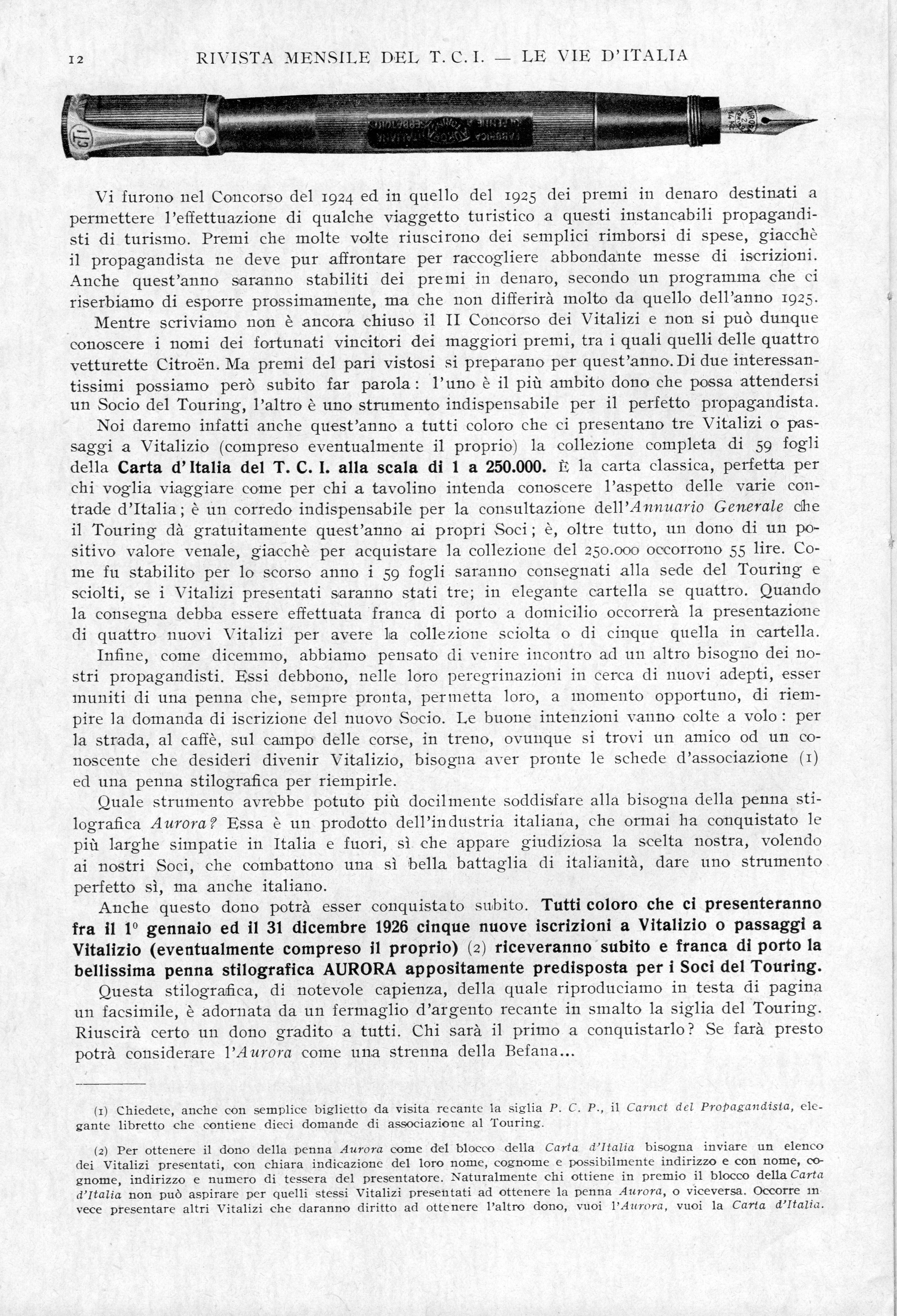 AURORA - RA2 pubblicitaria TCI - 1926-01. Le Vie d'Italia. Anno XXXII, n.1, pag.12