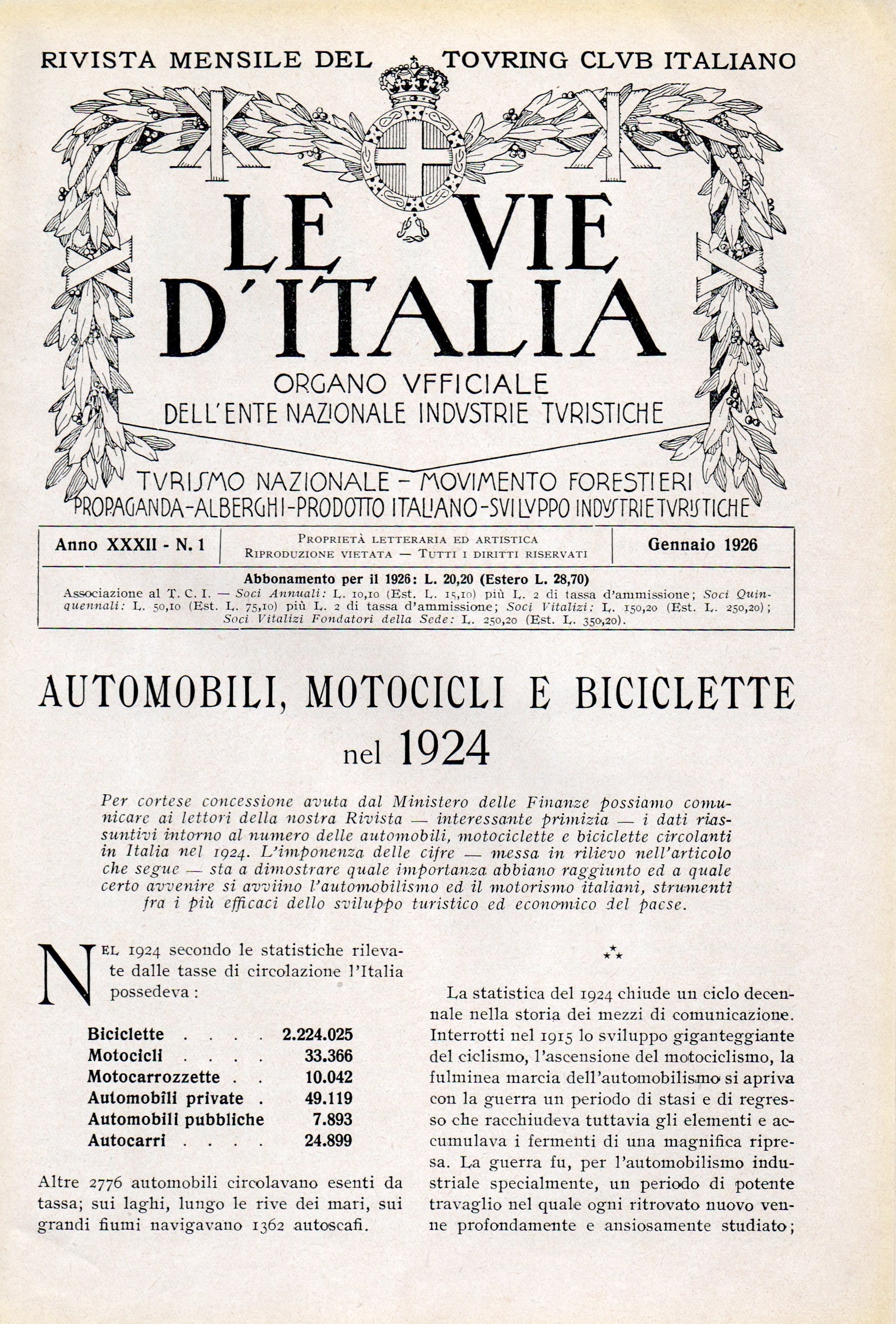 P.s. : sul frontespizio del numero c'è un interessante articolo con il parco macchine circolante in Italia l'anno prima...