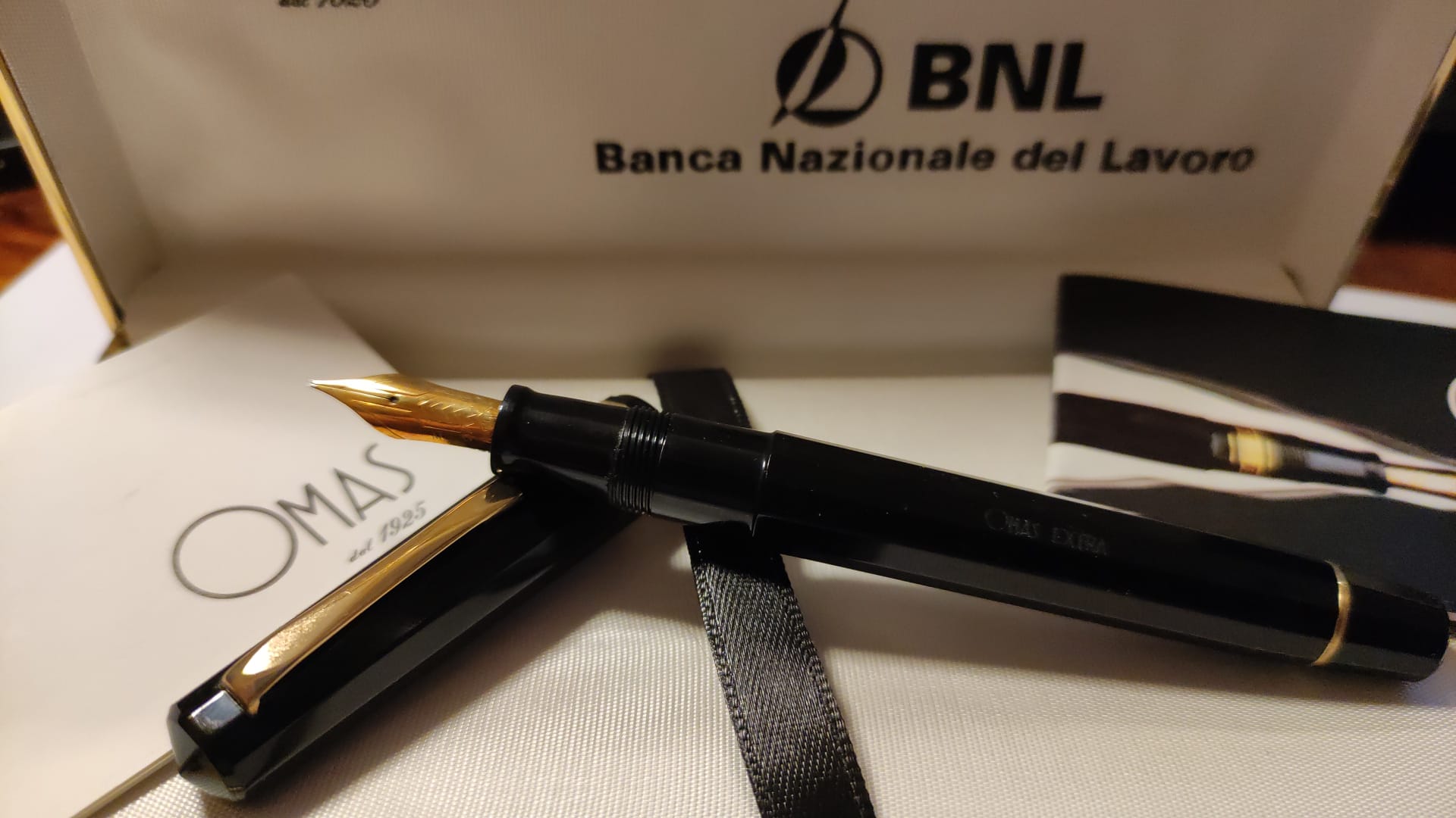 La scatola è brandizzata BNL, ma la penna è marcata solo OMAS EXTRA.