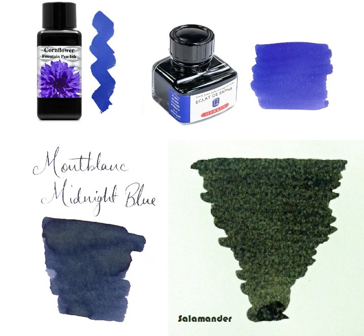 Diamine : Asa Blue - Matador - Majestic Blue - Sargasso Sea - Skulls and Roses - November's Rain - Red Dragon - Burnt Sienna - Evergreen