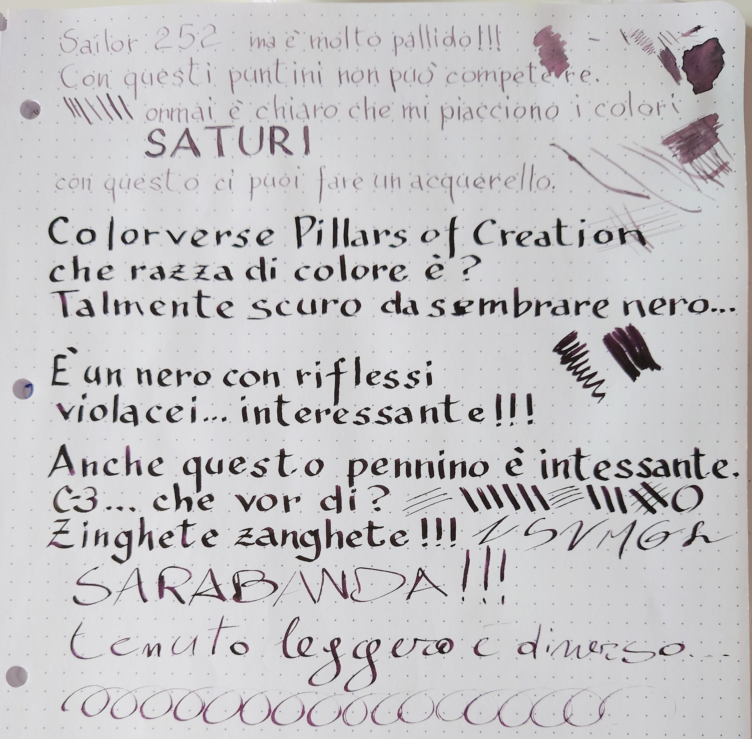 Uso invece veloce e leggero mostra di più il viola. Bello, scorrevole! (Mai usato pennino a intinzione prima di oggi)