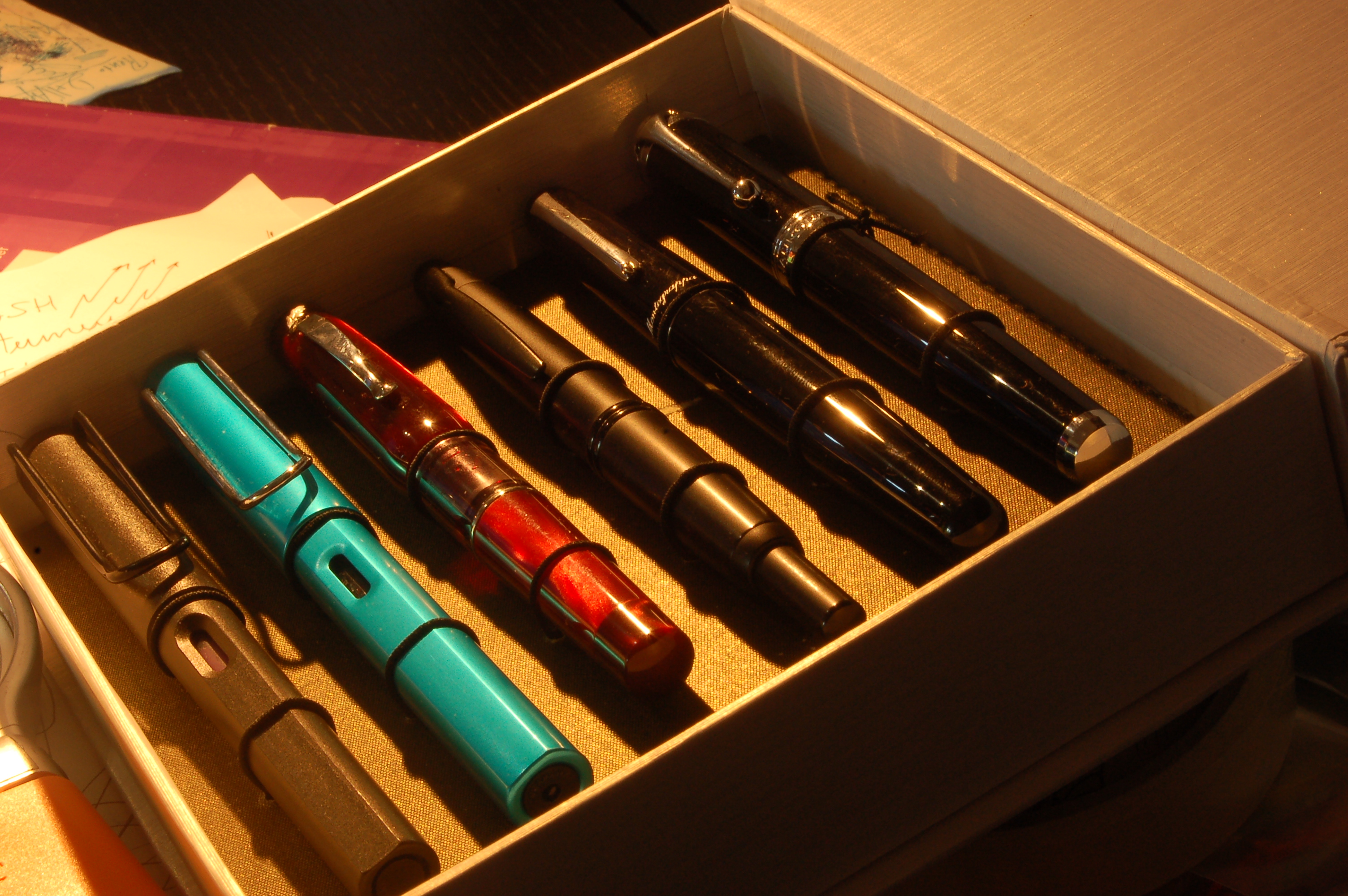 ink: Aurora*Delta*Diamine*J.Herbin*Montblanc*Noodler's*Leonardo*Omas*Pelikan*Pilot Iroshizuku*Sailor*Visconti*Waterman