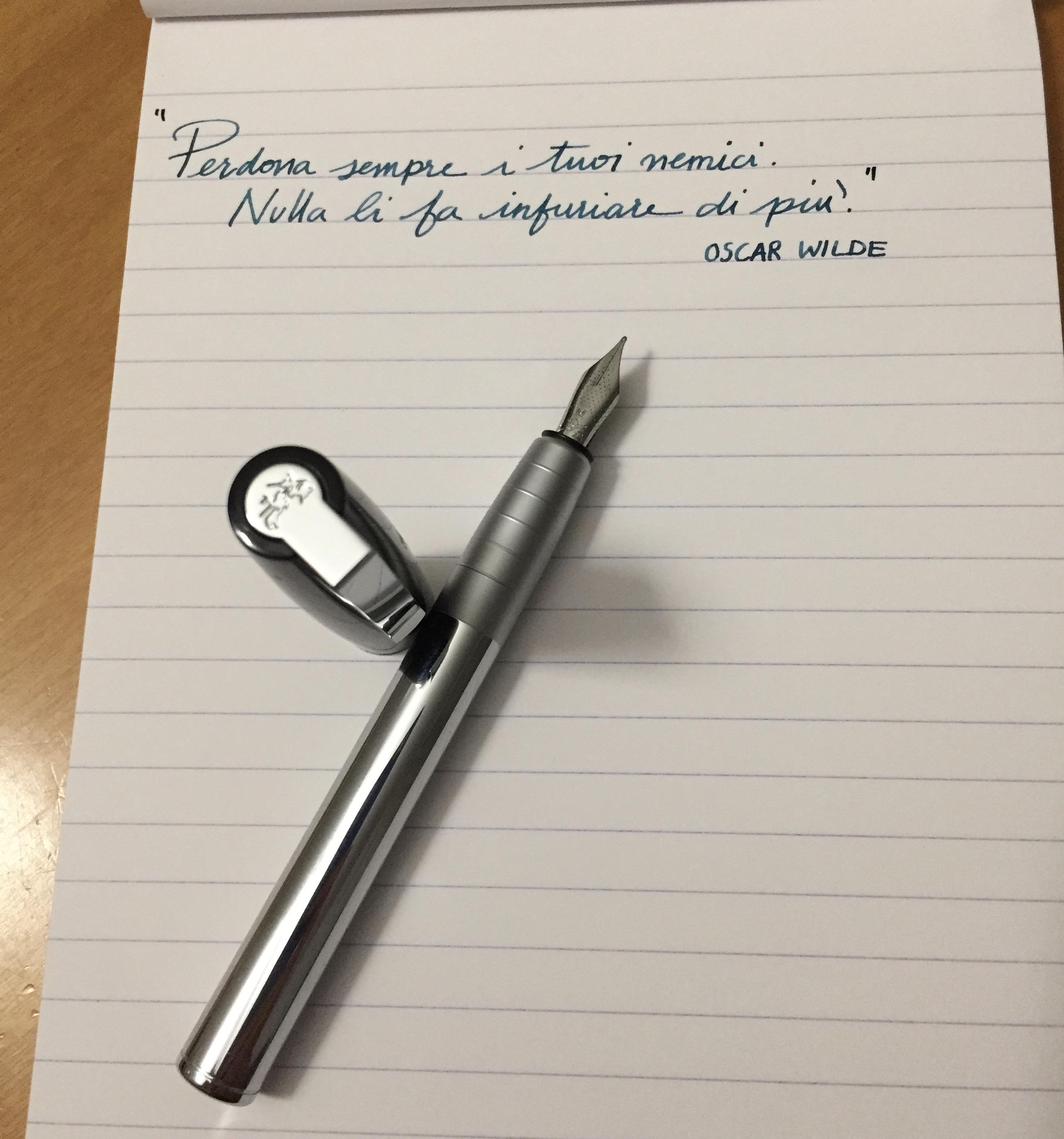 Il pennino Fusion della Lex, marchiato B ma in realtà è più un M. Io no so se credere o non credere alla teoria dei pennini Fusion, so solo che,pur essendo in acciaio, scrivono meglio di quelli in oro.Ne ho diversi, non mi fanno rimpiangere quelli più preziosi, provare per credere