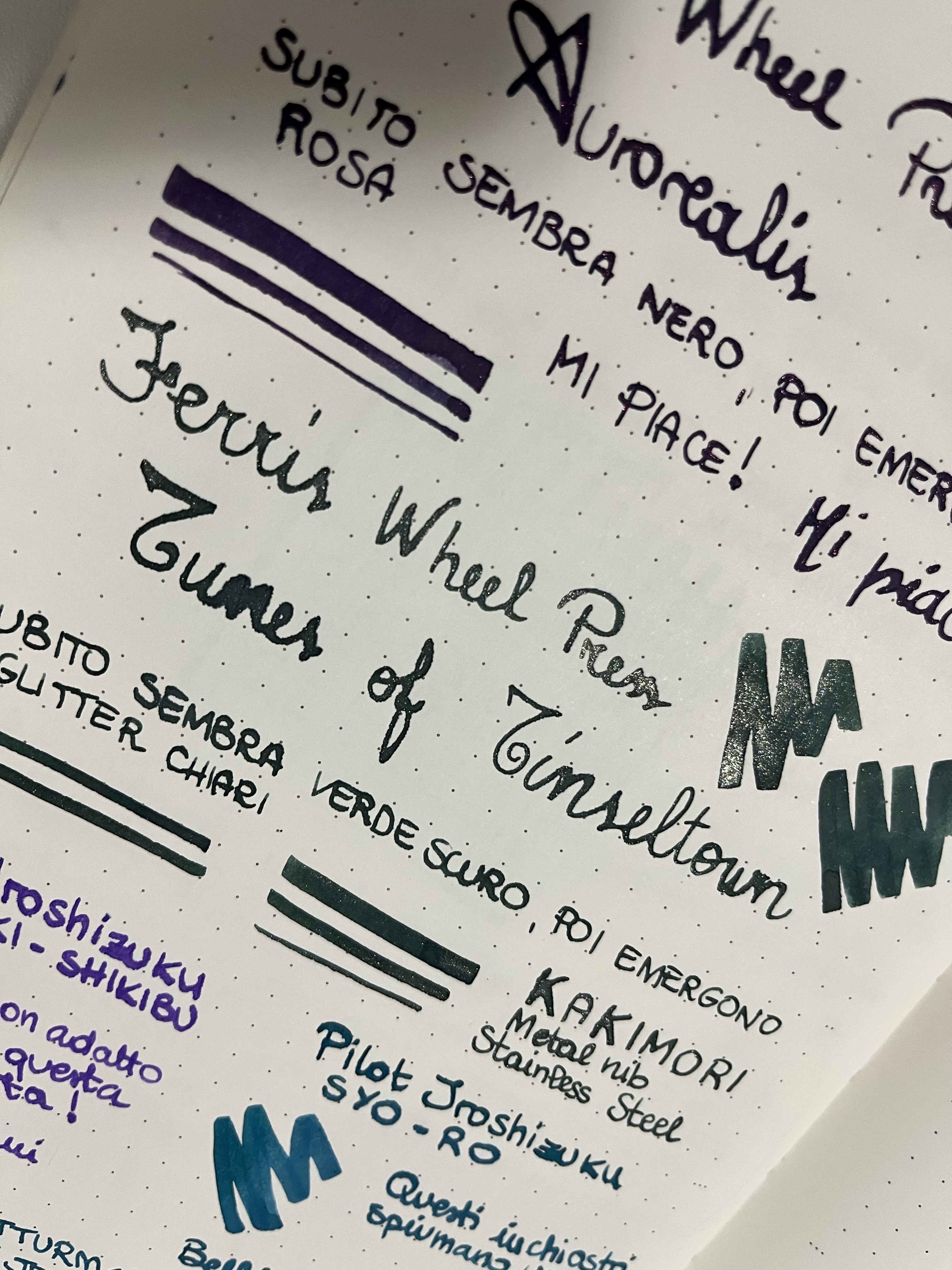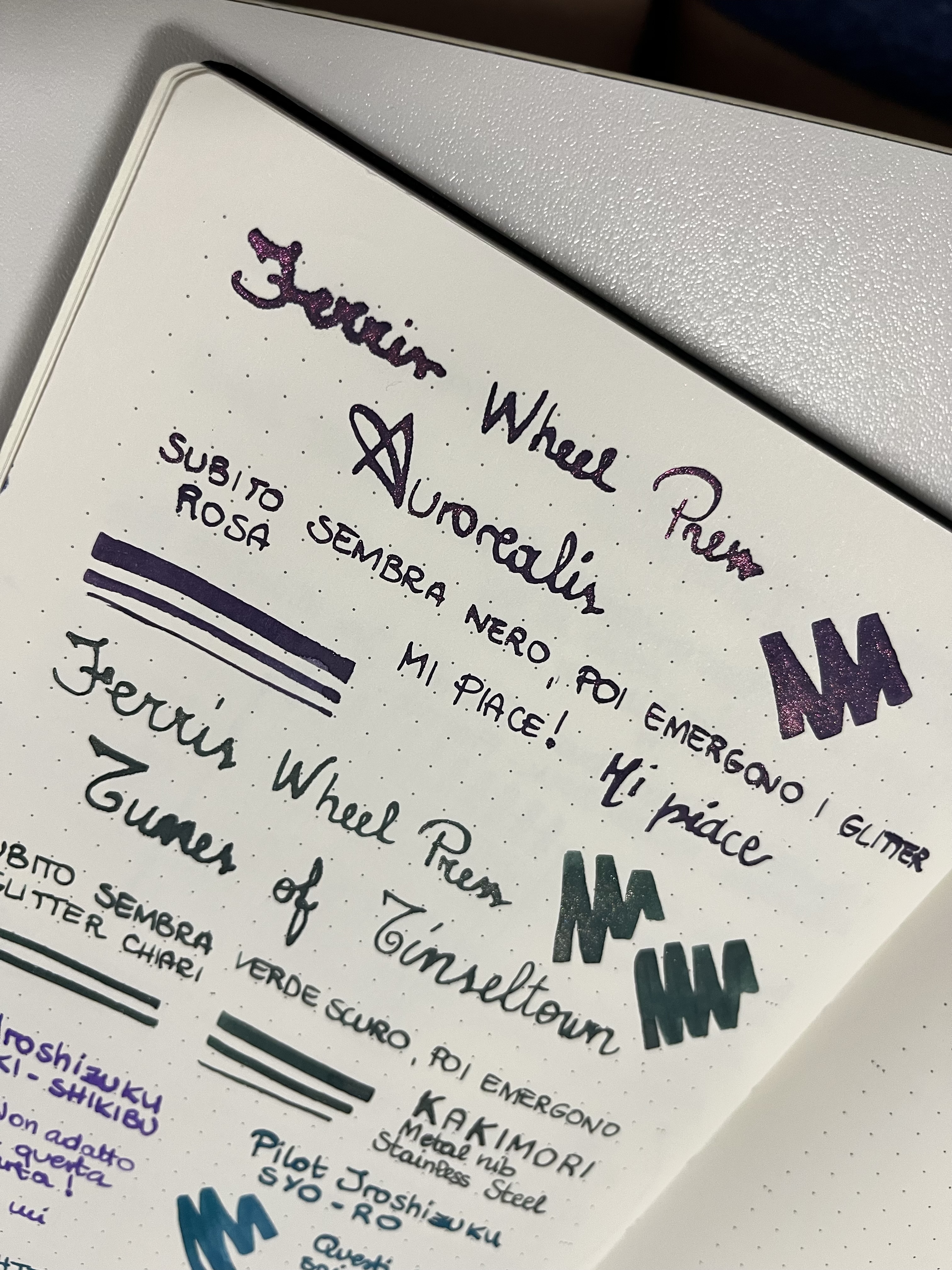 I due inchiostri Ferris wheel li ho presi da usare con il pennino a intenzione della Kakimori.