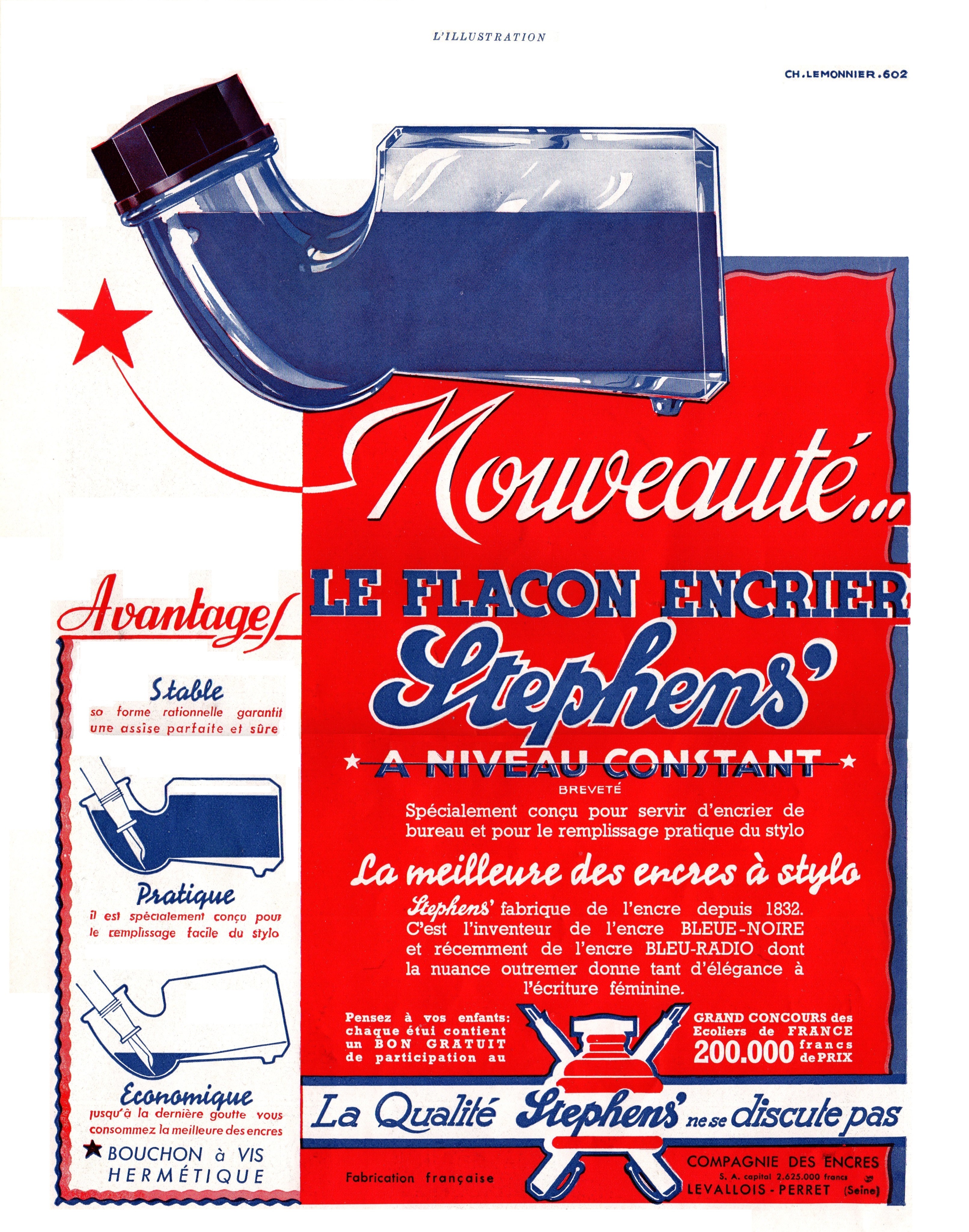 STEPHENS' - Ink. 1938-10-08. L'Illustration. Anno 96, n.4988, (pag.V)