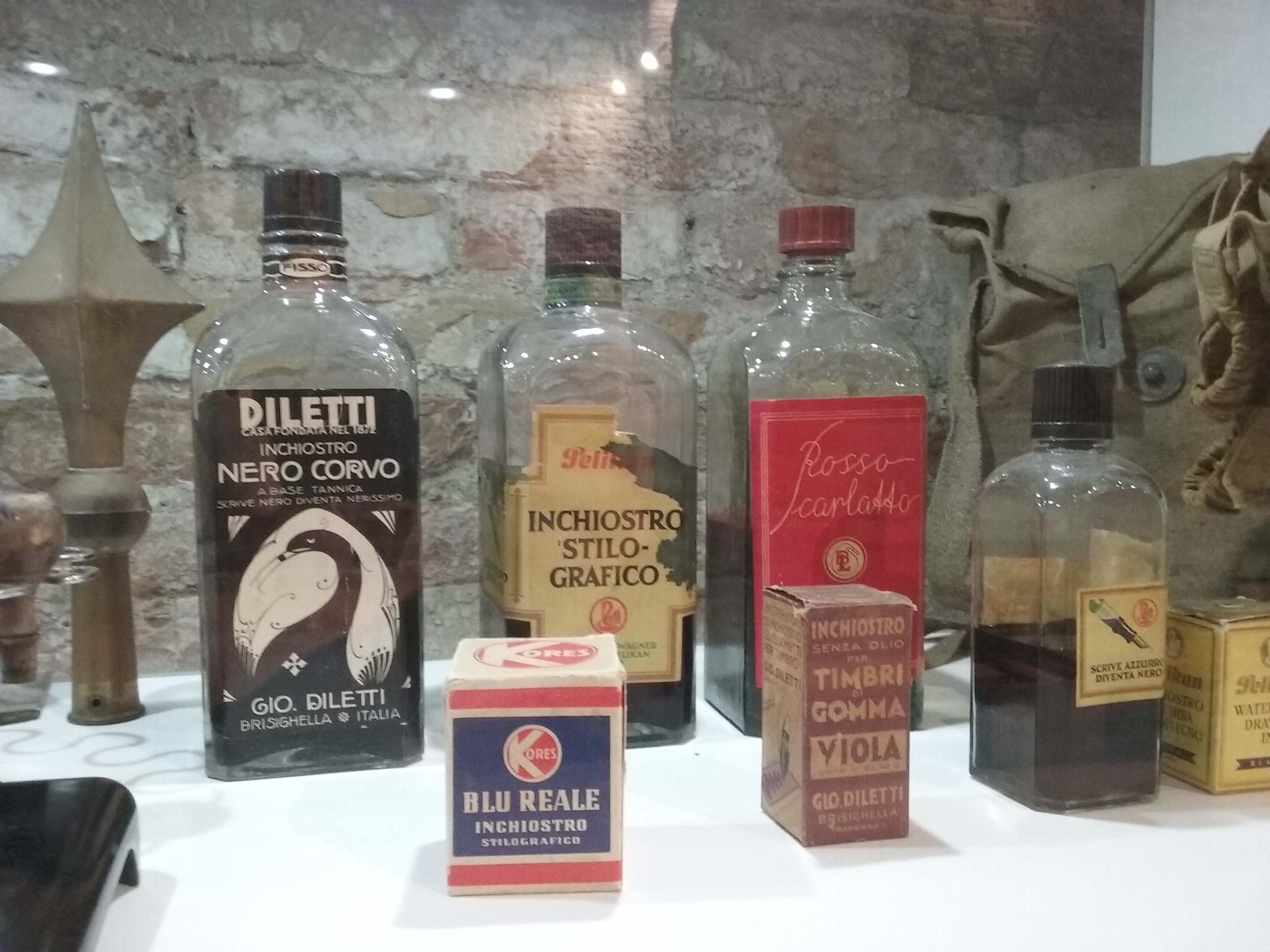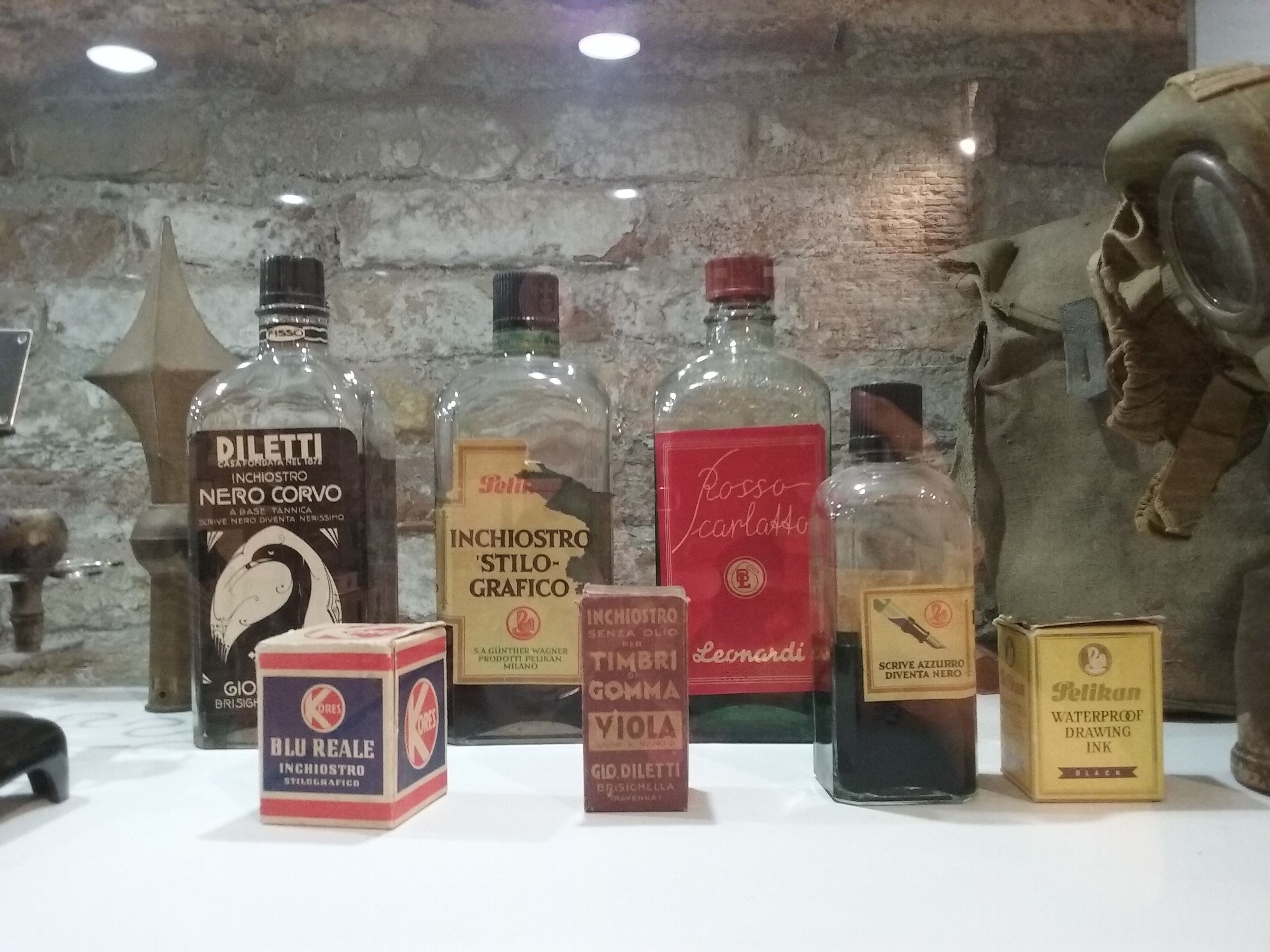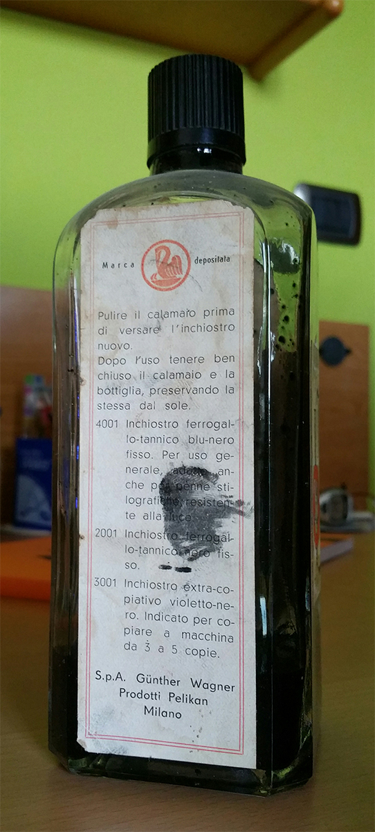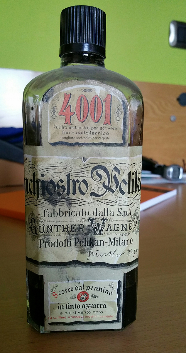 Se notate c'è anche un inchiostro Pelikan con l'etichetta che recita: "Scrive azzurro ma diventa nero".