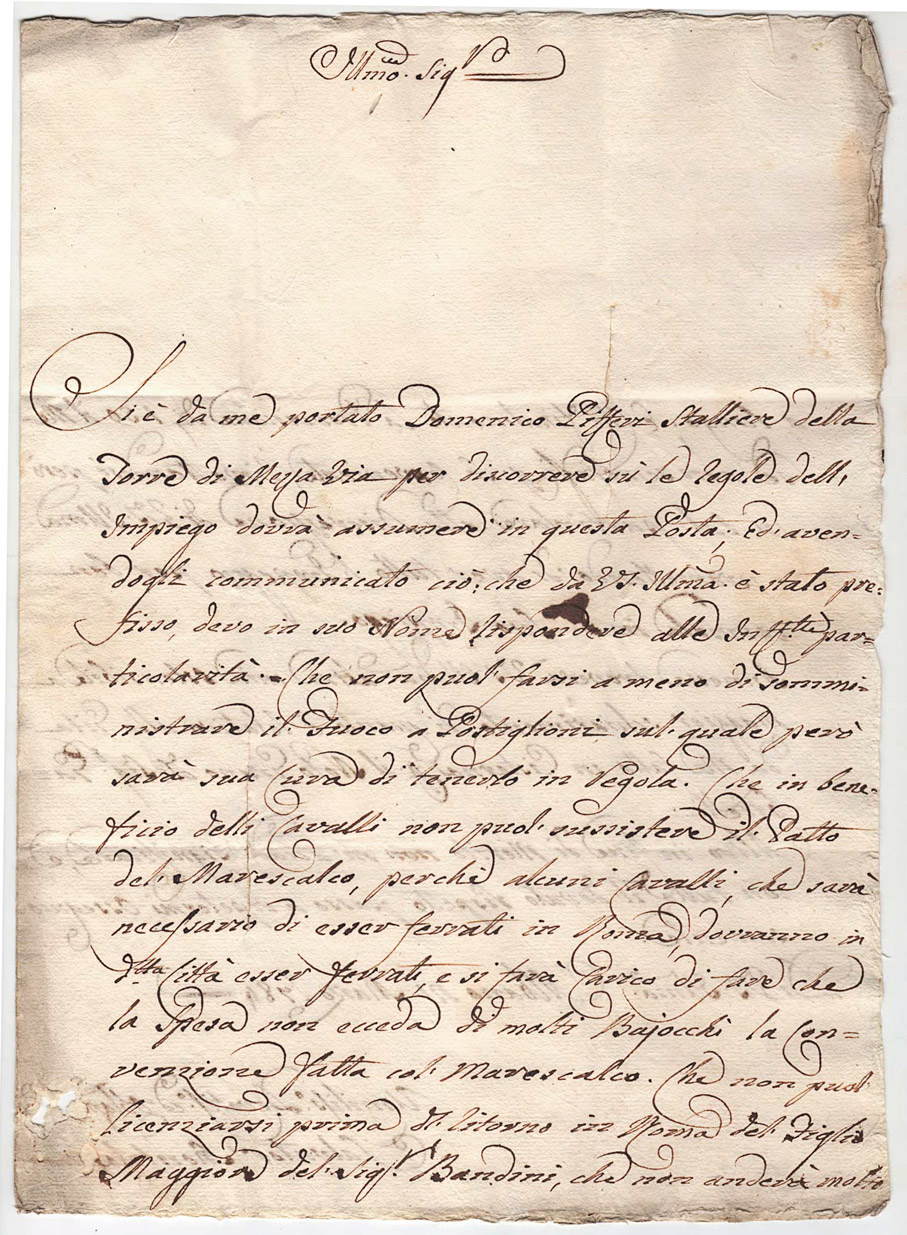 In questa lettera ad esempio, a colpirmi è stata la straordinaria padronanza del tratto dello scrivente, che non era certo un calligrafo ma un semplice fattore (o più probabilmente il gestore della Stazione di Posta ) che comunicava con il suo datore di lavoro.