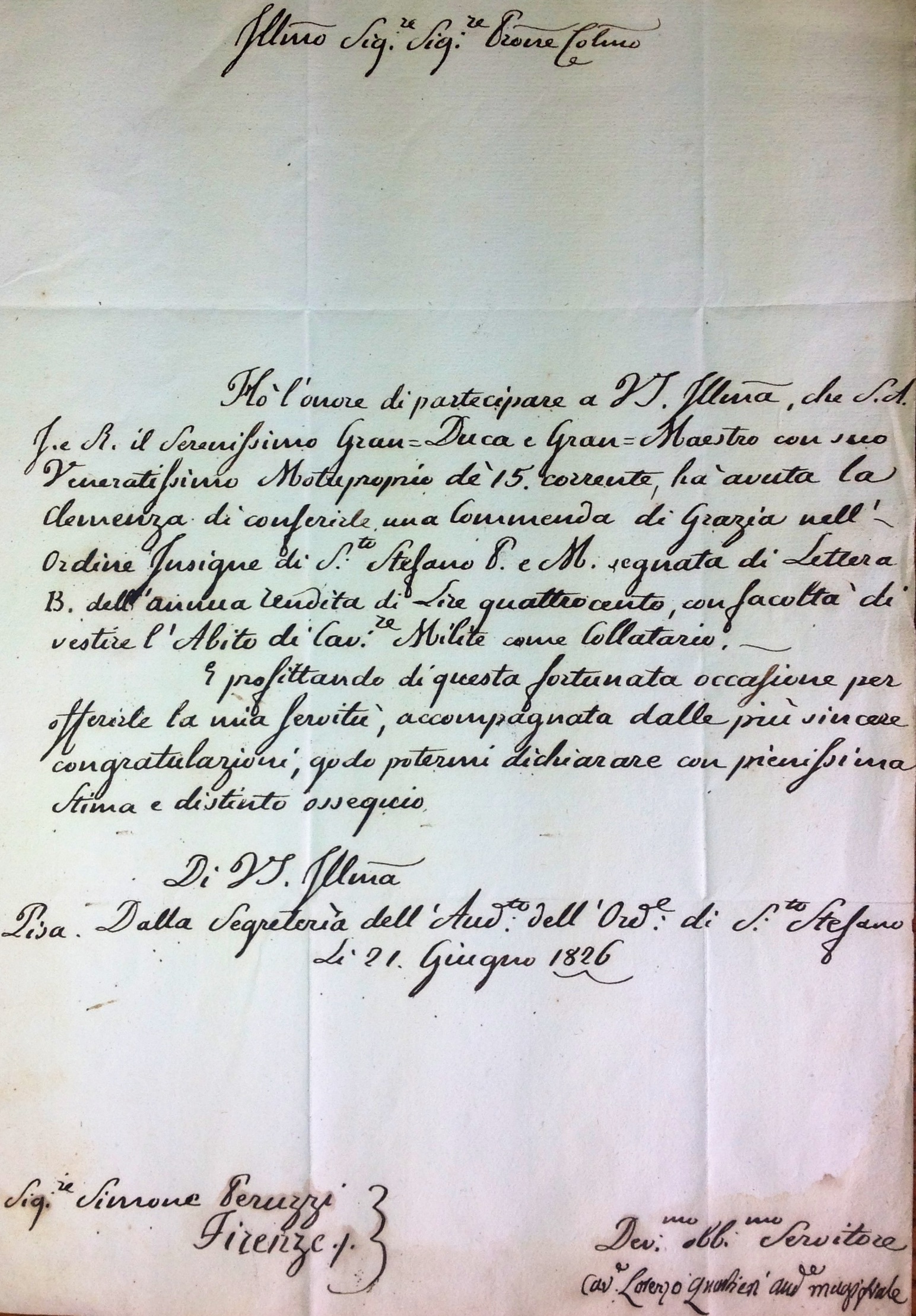 Se può interessare ho giusto sul computer questa lettera del 1826...