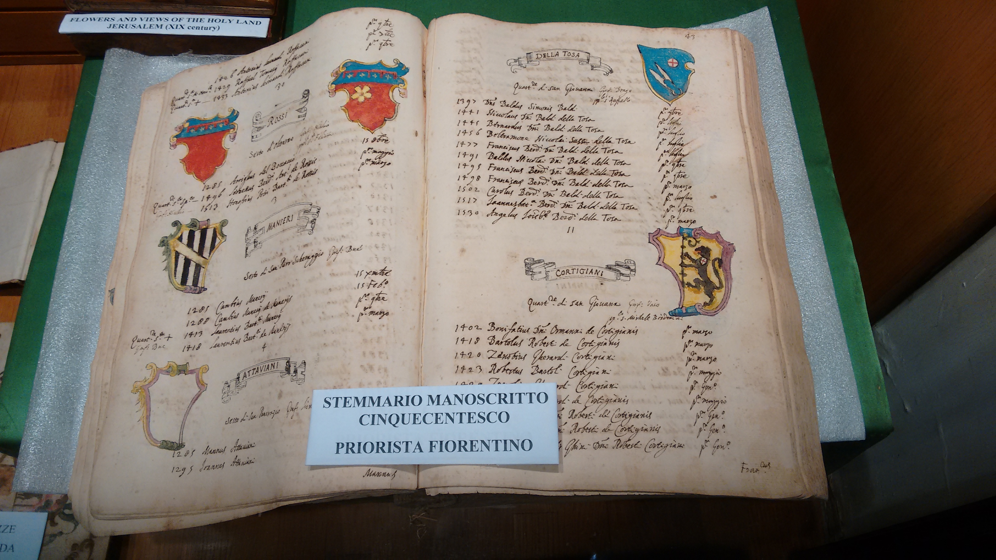 facendotelo sfogliare, potresti controllare le date scritte a margine delle Armi (le date accanto ai nomi propri indicano presumibilmente i momenti salienti per il casato, l'acquisizione di un titolo da parte del soggetto indicato, etc.) e appuntarti quelle più "recenti", che si avvicinano con buona approssimazione alla data in cui il volume è stato realizzato.