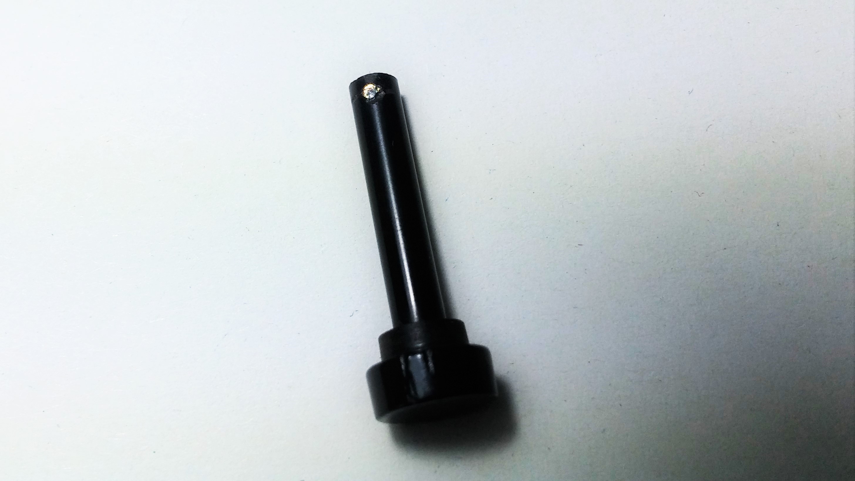Poggiala su una tavola di legno con un foro da 3 mm. di diametro in corrispondenza dello spinotto, tenendo il terminale più grande fuori della tavoletta.