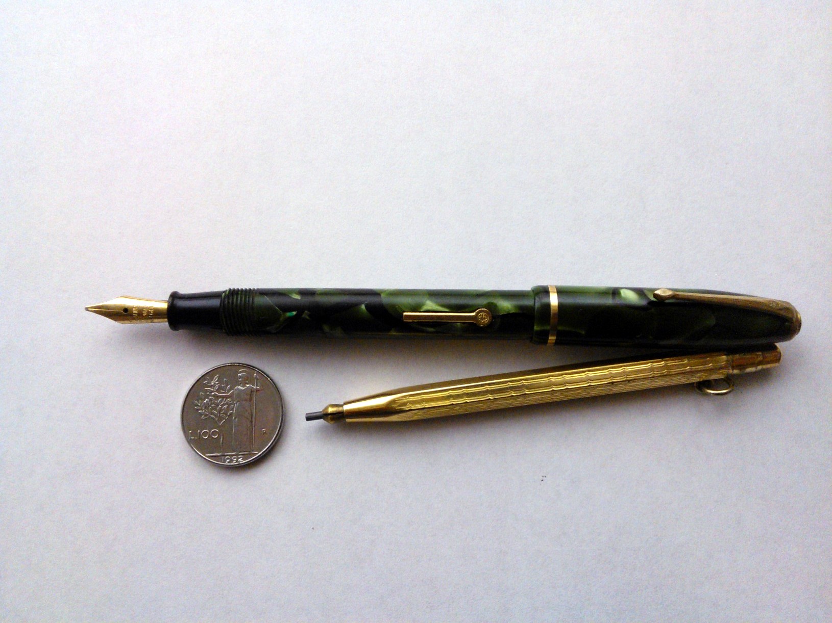 Alla fine ho lasciato sul campo una Soennecken button filler con pennino in oro e un set stilo/matita laminate in perfette condizioni (che pure avevo già acquistato, per fare un articolo sulle false Waterman degli anni 1930...): ma cosa ci volete fare: quando si trova la vera bellezza, si abbandona tutto il resto...