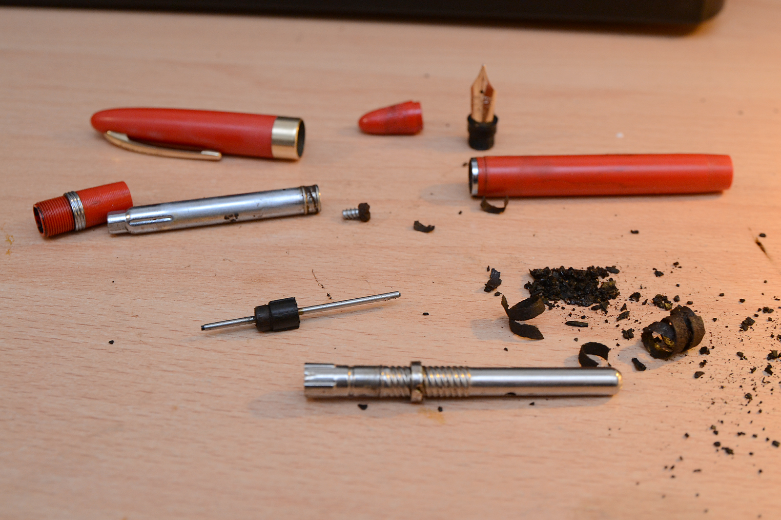 Guardate come ho trovato l'interno di questa penna, apertura alquanto complicata avendo la ruggine bloccato tutto.