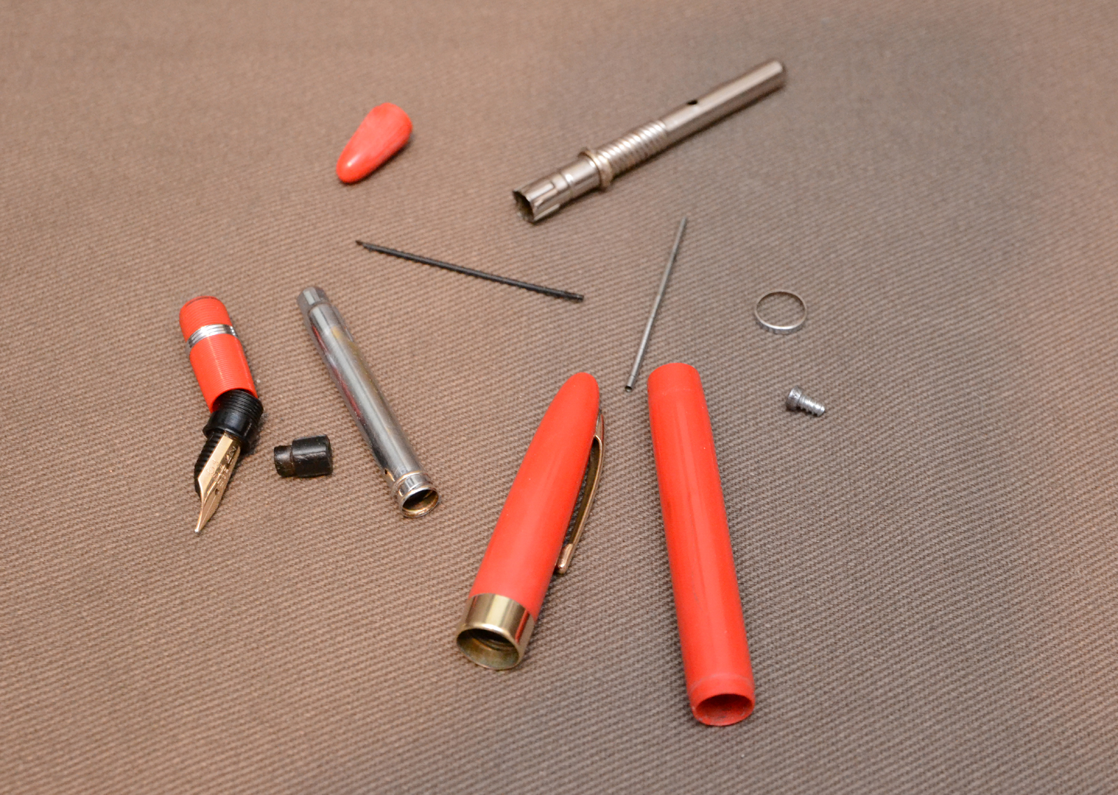 Nell'articolo su wiki non è puntualizzato che all'interno del puntale il tubo contenente il sacchetto, dove è presente la guarnizione del tubicino, deve scendere tanto fino al pennino,a me per ragioni che credo dipendere da qualche dentello creatosi con l'inchiostro e la ruggine, anche se avevo pulito ed ingrassato bene, la parte non scendeva completamente ed io pensavo fosse normale.