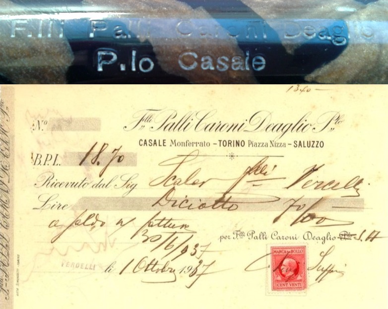 La Ditta committente della pubblicità era un cementificio, con sede a Casale Monferrato (Alessandria) ed uffici anche a Torino come si vede dalla fattura del 1937 allegata (reperita in rete), in attività per tutta la prima metà del Novecento.